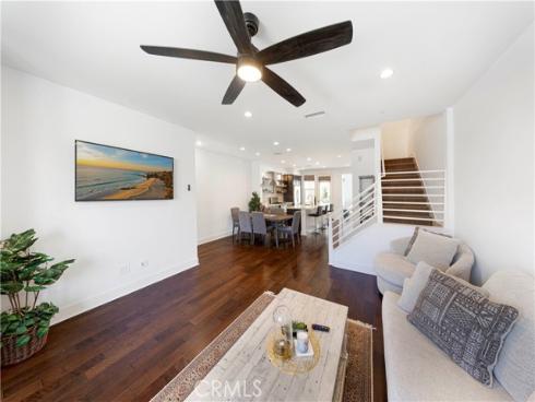 Welcome to this beautiful 3-bedroom, 2.5-bathroom, 1,931 sqft home in the highly desirable Vantis community! Designed for both style and functionality, this residence features an open-concept layout with sleek hardwood floors, newly painted interiors and abundant natural light. The upgraded kitchen is a standout, featuring open walnut shelving, a designer tile backsplash, and premium KitchenAid appliances—including a 5-burner gas stove, refrigerator, newer dishwasher, and hood. A spacious quartz island with seating add both style and convenience. A private main-floor patio and enclosed deck offer the perfect outdoor retreat, and a powder room completes the main level. Upstairs, the primary suite boasts a spa-inspired bath with a glass-enclosed shower and dual raised sinks. The laundry room is conveniently located on this level complete with new washer and dryer included in the sale, along with a versatile loft/media room, perfect for additional living space. The 2-car garage is designed for efficiency with epoxy flooring, EV charger, a 3-bike pulley system, and overhead storage. This prime location is just a short walk to Aliso Viejo Town Center, offering shopping, dining, and entertainment, with easy access to Laguna Beach, the 73 Toll Road, and the 5 Freeway. Vantis residents enjoy top-tier amenities, including a pool, spa, cabanas, gym, clubhouse, game room, BBQ areas, and outdoor lounges. More than just a home, this is a lifestyle!