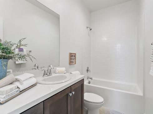 The UNICORN has been found! Discover an exceptional end-unit townhome, bathed in natural light and designed for modern living. Built in 2018, this 4-bedroom, 3-bathroom home features a highly desirable first-floor bedroom and ADA-compliant bath—ideal for multi-generational living, guests, or enhanced accessibility. Step inside through a private gated patio into an open-concept living space with soaring ceilings. The family room flows seamlessly into the sunlit dining area and a chef’s kitchen with high-end finishes, perfect for entertaining. Luxury vinyl plank flooring throughout the main areas, hallways, and stairs offers both elegance and easy maintenance. Upstairs, a versatile loft provides space for a home office or additional living area. The primary suite with tree-top views is a true retreat, featuring a walk-in closet large enough to be a bedroom, a spa-like en-suite bath with a dual sink vanity, and a spacious walk-in shower. Two additional bedrooms and an oversized shared bath with a tub/shower combo complete the upper level. Conveniently located adjacent to the hall bath, the laundry room includes a gas washer and dryer, built-in cabinetry, and a window for natural light and ventilation. Additional highlights include an attached 2-car garage with built-in cabinetry and a tankless water heater, plus a designated parking permit for long-term residents. For visitors, the community offers ample short-term guest parking conveniently located near the home, including handicap-accessible spaces. Enjoy scenic hillside and tree views with no neighbors directly in front or behind. Beyond your front door, experience the best of Anaheim Hills living. Enjoy morning strolls or weekend hikes on the nearby walking trails, or explore the rolling hills and nature paths of Santiago Oaks and Oak Canyon Nature Center. The Anaheim Hills Library is just minutes away, offering a welcoming space to read, study, or attend community events. Several beautiful parks are nearby, perfect for outdoor activities, sports, or simply unwinding in nature. Community amenities include walking paths, BBQ areas, a dog park, and ample guest parking. Located in the heart of Anaheim Hills, this home is minutes from award-winning Canyon High and El Rancho Charter Middle School, international markets, dining hotspots, and major freeways. Low-maintenance, move-in ready, and designed for today’s lifestyle—don’t miss this unique opportunity!