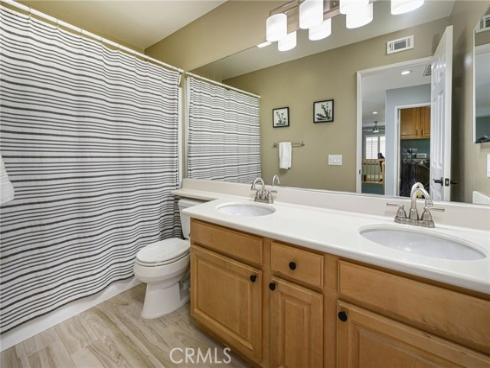 Welcome to 8851 Heatherwood tucked away high in the hills of beautiful Anaheim Hills ~ This home is situated in the Cambria development on a cul-de-sac street which features privacy and wide open views of city lights-mountains-hills ~ The home includes a light and bright open floor plan with walls of windows ~ There is a open concept kitchen overlooking the family room with sit down island / cozy eating nook / granite tile counters / fireplace / stainless appliances ~ 3 bedrooms + 4th bedroom currently used as a den + 3 full baths (One on main floor) + generous loft ~ New wood like luxury vinyl was recently installed throughout the entire home ~ Newer interior paint ~ Plantations shutters are throughout ~ The oversized primary suite features forever views-dual walk/in closets and sinks-separate soaking tub and shower ~ Large open upstairs loft has endless use options ~ Upper landing features a built-in desk with 2 adjacent secondary bedrooms that share a bath with dual sinks ~ Convenient upstairs laundry room with washer/dryer included ~ The private rear yard features a generous slate surface patio space and wide open views ~ Attends coveted Running Springs Elementary-El Rancho Middle-Canyon High ~ Convenient to shopping-restaurants-freeway-toll road-parks-hiking/biking trails ~ Low $110 HOA dues / 1.10% total property tax rate / No Mello Roos