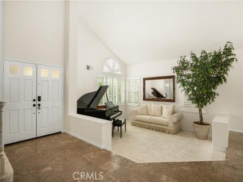 Welcome to 937 S. Barton Court, a stunning 5 bedroom, 4 bath residence nestled in the highly sought after Summit Springs community in Anaheim Hills. This professionally designed freshly painted exterior and interior home ideally located on a quiet cul-de-sac spans across 2863 square feet of living space on a spacious 9424 square foot lot. Enjoy the colorful garden walk approach as you enter through double doors into the spacious foyer with soaring ceilings over an elegant formal living room punctuated with a beautiful Boston Steinway piano adjacent to a formal dining room featuring French doors that open to the gorgeous back yard. The charming kitchen which opens to a spacious family room, boasts top of the line Thermador oven, DCS stove top, custom cabinetry with lighted pantry shelves and white tile counter top center island all overlooking the family room with beautiful fireplace and floor to ceiling custom built in cabinetry. Step through the sliding glass door onto a patio and entertainers dream with a gas fire-pit, new built in BBQ island overlooking a plethora of professional mature landscaping surrounding the breathtaking pebble tec bottom pool with an in floor pop up cleaning system, Aqua link App Control, new pool tile and coping and new pool equipment all providing peace and relaxation. The main floor spacious bedroom and bathroom provides convenience for one level living, guests, or multi-generation living. Completing the first level is an interior laundry room with sink for added convenience. The second level has 4 additional bedrooms each offering comfort and privacy with ample cabinets for storage in the hallway. The spacious primary suite overlooking the back yard is a retreat in itself which includes a sitting area, fireplace, a jet bath tub with separate shower, storage, skylight, porcelain tile flooring, and walk in closet. One bedroom is currently used as a professional office to a Jack and Jill third bedroom with full bath in between. The 4th bedroom is a beautiful en suite bedroom with large windows. This home has Simonton Windows installed throughout with the lifetime warranty transferring to the new owners. Additional features is a surround sound system, security alarm system, ceiling fans throughout the home and 3 car garage with overhead storage and lighting. The ideal location near award winning schools, restaurants, and shopping makes 937 S. Barton Court an opportunity to experience elevated living in Anaheim Hills.
