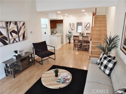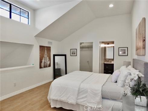 Discover your dream home in the highly sought-after Westside complex of Fullerton! This contemporary upstairs end unit boasts a stunning large patio, perfect for soaking in gorgeous sunset views while enjoying the fresh air. The spacious split-level floor plan features an open-concept high ceiling living room, dining area, and a stylish galley kitchen, making it ideal for modern living. This unit includes a well-appointed bedroom and a full bathroom, along with the convenience of in-unit laundry. Ascend to the upper level, where you’ll find a versatile large loft as a second bedroom or that can easily serve as a den, office, complemented by an oversized walk-in closet, storage area in the attic space and a half bath. Unit 180 comes with a dedicated carport, and the HOA community offers beautifully landscaped grounds, two inviting pools with a spa, a playground, a BBQ area, and ample guest parking. The HOA covers water, trash, exterior fire insurance, landscaping, and building maintenance. Enjoy a prime location near Clarke Regional Park, shopping, dining, public transportation, and highly-rated schools. Plus, this complex is VA approved, making it a fantastic opportunity for those seeking a contemporary lifestyle in a vibrant community!