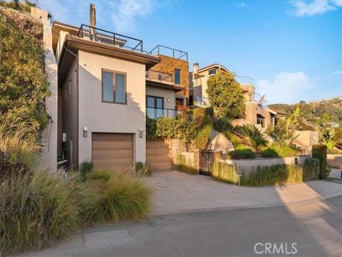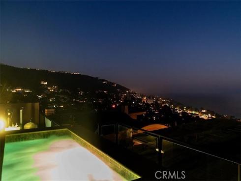 Nestled in the heart of Laguna Beach, this custom-built masterpiece offers an exquisite coastal living experience, with a total of 4,125 square feet and the convenience of an elevator for easy access between floors. Built in 2011, this contemporary home boasts breathtaking panoramic ocean views, just a short stroll from the beach—allowing you to indulge in both serene seclusion and vibrant suburban life. The sleek design flows seamlessly between indoor and outdoor spaces, featuring expansive decks off each level with sweeping views of the ocean, whitewater, Catalina Island, and city lights. The spacious kitchen, complete with a breakfast nook, overlooks the patio and features granite counters and stainless steel appliances, including a Wolf professional gas range oven with a center grill. A glass accordion-style patio door opens the living room up to the oversized deck, which is equipped with a retractable custom shade, a built-in fire pit and BBQ grill with a sink. As you explore this exceptional home, discover a secret hidden room reminiscent of something straight out of a James Bond movie—adding an intriguing element of surprise and luxury. The expansive primary suite features an inviting fireplace that creates a warm and cozy atmosphere and access to a large deck to soak up the sun. The large Primary Bathroom boasts a spacious stand-up shower and a jetted bathtub, perfect for unwinding after a long day. The primary suite also includes a large luxurious walk-in closet equipped with elegant custom cabinetry. The open-concept living areas are flooded with natural light, with ocean views from nearly every corner, creating a warm and inviting atmosphere. Spacious outdoor terraces provide the ideal setting for entertaining or relaxing in style. To enter into a state of tranquility, make your way to the upper level of the property where a relaxing spa awaits, offering panoramic 180-degree coastline and city light views—a peaceful retreat after a day spent enjoying the nearby beach. An outdoor shower is conveniently located near the spa and upper level bedrooms. Every detail of this residence exudes luxury and refinement, creating a lifestyle of unparalleled coastal elegance in the charming community of Laguna Beach.
