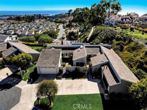 Nestled atop the highest hill in Laguna Niguel, off Pacific Island Drive, this exceptional ocean-view, single-level residence is located in the highly sought-after 55+ community of Monarch Summit II. Offering breathtaking panoramic views of the Pacific Ocean, rolling hills, and distant mountains, this 3-bedroom, 2-bathroom home spans 1,642 square feet of thoughtfully designed living space. Situated on a tranquil cul-de-sac, the property boasts refreshing ocean breezes and lush landscaping. Enter through a beautifully landscaped and gated courtyard or via the attached two-car garage for added convenience. Inside, an abundance of natural light fills the home, complemented by vaulted ceilings, skylights, and expansive windows that enhance the open and airy ambiance. The ocean-view kitchen provides ample storage, while the washer and dryer are conveniently located in the garage. The highly desirable Plan B layout includes a converted third bedroom, now a versatile office or den. Comfort is ensured year-round with cooling coastal breezes and central air conditioning. This home has been upgraded with whole-house re-piping, a new range and dishwasher, enhancing both functionality and peace of mind. Residents of Monarch Summit II enjoy an array of exceptional amenities, including a clubhouse with a full kitchen, a pool and spa, as well as recreational facilities featuring poker and ping-pong tables. Nearby, Seaview Park and the Badlands offer scenic hiking trails, while Talavera Drive Park provides stunning ocean and mountain vistas. Experience the perfect blend of serenity and convenience in this well-maintained community, just moments from world-renowned beaches, luxury resorts, premier golf courses, upscale shopping, and fine dining. Welcome to life on the hill!