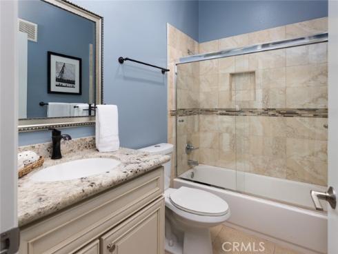 Welcome home to this beautifully maintained single-level upper unit in the highly desirable La Vista community, offering mountain and golf course views from your private balcony. Just two miles from world-class beaches, resorts, and championship golf courses, this home is perfectly situated for those who appreciate both tranquility and convenience. This thoughtfully designed 2-bedroom, 2-bathroom condo features dual primary suites, each with its own private ensuite bathroom. The primary suite includes a spacious walk-in closet and a dual-sink vanity, while the second bedroom offers a generously sized closet and a well-appointed bath. With 14-foot vaulted ceilings in the main living room, the open and airy living space is bathed in natural light, creating an inviting atmosphere. A travertine-tiled gas fireplace serves as a beautiful focal point in the living area, which extends to a private balcony deck, perfect for enjoying the serene views. Designed with both style and function in mind, the home features granite countertops, traditional custom cabinetry, stainless-steel appliances, and luxury vinyl flooring throughout. Central air conditioning ensures year-round comfort, and the in-unit laundry, conveniently tucked into the hallway closet, adds to the home's practicality. Located near La Vista’s main clubhouse, this residence offers easy access to the community’s resort-style amenities, including a full gym, sparkling solar heated pool, outdoor spa, and inviting BBQ area. With beautifully landscaped grounds, walking trails, and a short distance to dining, shopping, and downtown areas, this home provides the perfect balance of comfort and coastal living.
