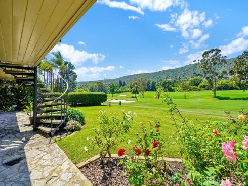 ON Golf Course-4 Car Garage-HUGE Cul-de-sac Flag Lot. Enjoy Expansive Golf Course Views. Close to beaches and world-renowned resorts. With an 11,900 s.f. PRIVATE FLAG LOT on a quiet CUL-DE-SAC in the Prestigious GATED Community of Links Pointe, this Stunning Montecito Style Residence with 4 CAR ATTACHED GARAGE and MAIN FLOOR MASTER BEDROOM Iis rare, unique, and desirable. Enjoy Tranquil Panoramic Golf Course Views from virtually all major Rooms and the HUGE Main Level VIEW DECK. The Ultra Private Home is revealed after going down the long driveway off the end of the Cul-de-sac. Entering the Dutch Door Entry, your Designer will love the Open Beam Ceilings and non-cookie cutter style throughout this Stunning home. Skylights and newly sought after Saltillo tile set the French Style Kitchen aglow with a centerpiece Lacanche Stove across from the Sub Zero Refrigerator. Also on the Main Floor find the Formal Dining Room, Open Beam Living Room with cozy fireplace, and Primary Bedroom Suite all open to the Huge View Deck with Beautiful Panoramic Golf Course Views. New Plank Floored Primary Bath Suite has inviting Shower, Soaking Tub, and Walk-in Closet. A Main Level Bathroom serves guests and is next to a Bedroom/Office with built-ins. This home may be one of the only 4 Car Garage Homes on a Golf Course in Coastal Orange County. As you go down to the Level you will be greeted by a Massive BONUS/ENTERTAINMENT ROOM with a wall of French Doors opening to an Oversized Yard blending into El Niguel's 18 hole Championship Quality Golf Course which underwent a complete renovation in 2018. 3 BEDROOMS are served by a Large Bathroom with Full Sized Shower and Dual Vanity Sinks which is great for guests or family. Light Streams through a side door into the Plank Floor Laundry Room. Don't overlook the GIGANTIC Utility/Storage room on the side of the home for all your Storage and Outdoor Entertainment needs. Where else can you enjoy a Day of Golf and then take a Walk to Salt Creek Beach for a Breathtaking Sunset. Currently one fo the 4 garages is configured as a Laundry Room to provide Main Floor Living without stairs All will agree this one of a kind Golf Course Gated View Home is next to impossible to replicate. El Niguel Country Club membership is separate.