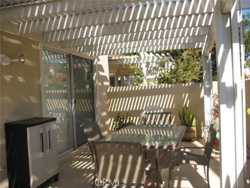Gorgeous Plan 3 in Palmia Courts! Very popular plan with 2 bedrooms and den/3rd bedroom! Extra light and open plan with beautiful wood floors! Large open living room with high volume ceilings and cozy fireplace! Dining room also with high volume ceiling! Large open kitchen with breakfast nook! Private den with ceiling fan! Great location near Promenade entrance, next to greenbelt and close to pool and spa!