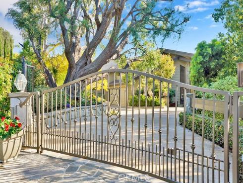 New Reduced Price for this custom estate home nestled in the hills of North Tustin. Boasting a large 7,622 sf open space floor plan for family living and entertaining, the home was designed by award winning architect Ron Yeo. Conceived for a family lifestyle with an emphasis on entertainment, upon entry into the foyer with a large crystal chandelier, the home opens to a living room with fireplace and dramatic 180-degree views of Tustin, Irvine, Fullerton and the Pacific. The adjacent dining room with crystal chandelier, kitchen with breakfast nook and outdoor patios are intimate and accessible. A copper fireplace provides a warm environment to the family room including a reading nook and direct access to the large pool deck. A convertible office/library incorporating another copper fireplace, built-in bookcase and outdoor patio is conveniently located just below the living room and entry foyer with direct stairway access. Entertainment highlights blend seamlessly with family elements with a sit-down bar with sink, dishwasher, refrigerator and media center. From this space it's just a few steps to the private wine tasting room with walk-in refrigerated wine cooler and outdoor deck. Directly adjacent is a fitness area with full length mirror and barre and small bar opening to a spacious family room, hot rock sauna and bath, with access to the outdoor decks and a resort style natural rock waterfall, solar-heated pool, spa and built-in BBQ, all with dramatic views. Upstairs bedrooms feature a large master with fireplace, outdoor deck and master closet with built-in island cabinet. The master bath impresses with a 2 head shower, spa tub, double sinks, garden feature, skylight and 2 chandeliers. Additional living space includes 2 en suite bedrooms with private patios, and a 4th bedroom with adjacent bath. Other unique features of this blended living space include a Zen garden retreat with water feature, 3 car garage with extensive built-in storage cabinets and workbench, integrated alarm and intercom system, central vacuum, 2 tankless water heaters, 4 furnaces, 4 a/c units, 2 skylights and hardwood floors to name just a few of the many luxury features of this estate. The home’s exterior was painted in 2023 with new decks installed in the last 3 years. A key safety feature provides crucial wildfire protection with an integrated roof sprinkler system and strategically located controls in the master bedroom and garage. Visit www.10841Hideaway.com