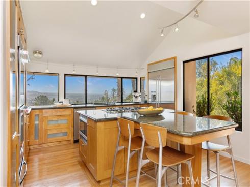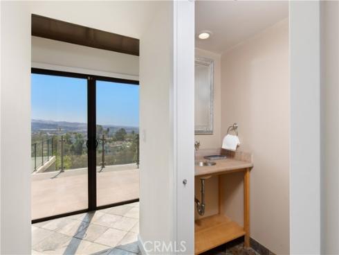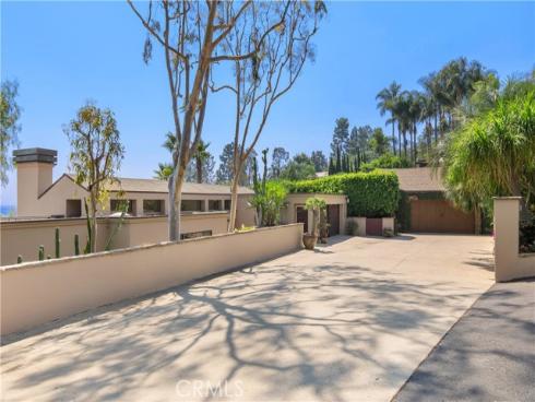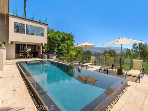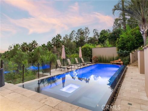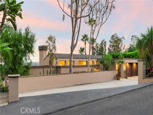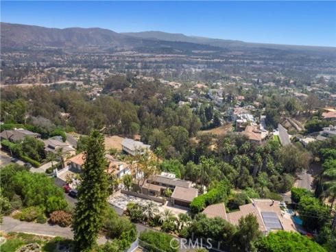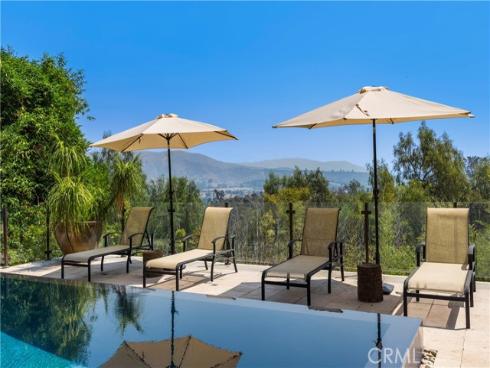 Tucked away in the prestigious Lemon Heights community, this architectural masterpiece is a home where contemporary design meets natural serenity. Originally crafted by renowned architect Leason Pomeroy, the home has been thoughtfully enhanced with modern upgrades, including a complete ADU and an infinity-edge pool. Every detail of this residence showcases exceptional craftsmanship and materials— classic contemporary lines, solid maple and oak flooring, raw travertine, and copper accents—all seamlessly blending elegance with warmth. Step inside the main house and be welcomed by soaring ceilings and expansive windows that flood the space with natural light. Nearly every room offers breathtaking, panoramic views—rolling avocado groves, the majestic Saddleback Mountain, and Orange County’s untouched open spaces—reminiscent of Napa Valley’s tranquil landscapes. The living room serves as the heart of the home, where a cozy fireplace, dramatic ceiling heights, and floor-to-ceiling windows frame the stunning scenery.The gourmet kitchen is designed for casual family moments, enjoying coffee with the sunrise, or sophisticated entertaining. With stainless steel appliances, granite countertops, and a sprawling island, this space is as functional as it is beautiful. The primary suite is a sanctuary of its own, complete with an outdoor shower & two private balconies that immerse you in the surrounding landscape. The spa-like en-suite bathroom features a soaking tub, dual vanities, and a steam room—offering an indulgent escape from everyday life. The guesthouse (ADU) is a world of its own, featuring a fully equipped kitchen, dedicated laundry, and spacious living areas. Pocket glass doors open directly to the pool area, creating a seamless indoor-outdoor flow—perfect for hosting. Whether used for guests, a home office, or a creative studio, this space offers unparalleled flexibility. You’ll find yourself in a private resort-like setting. The infinity pool and hot tub are framed by lush landscaping, creating a secluded oasis for relaxation or social gatherings. A wood-fired pizza oven, fire pit, and multiple outdoor entertaining spaces further enhance the experience. Additional highlights include a two-car garage and generous storage spaces. Located within a top-rated school district and just minutes from premier shopping, dining, and entertainment, this home is both an escape & a lifestyle statement—where luxury and nature exist in perfect harmony.