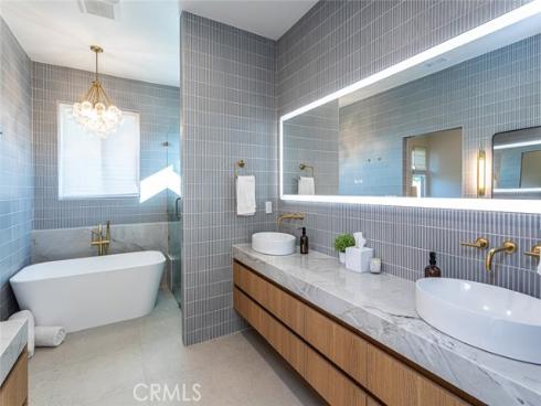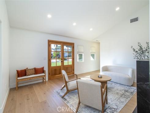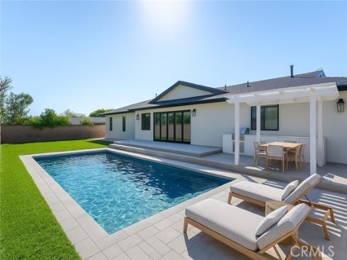 Welcome to 12592 Singing Wood Dr – a stunning single-story estate nestled in the highly sought-after North Tustin community. This beautifully upgraded 3,185 sq ft home offers 5 spacious bedrooms, 5 well-appointed bathrooms, and a thoughtfully designed open floor plan perfect for both everyday living and entertaining. Step through the front doors and immediately feel the warmth of natural light pouring in through expansive windows, creating an inviting and airy atmosphere throughout. Elegant wood flooring, oversized baseboards, and clean, modern lines set the tone for the sophisticated yet comfortable interior. The heart of the home is the gourmet chef’s kitchen – a true culinary dream featuring a massive center island, sleek quartzite countertops, a walk-in pantry, and an abundance of custom cabinetry. High-end appliances include a Sub-Zero refrigerator, Café double oven, dual dishwashers, a built-in microwave/oven combo, and an ILVE 8-burner stove, all designed to elevate your cooking experience. The kitchen flows seamlessly into a grand family room with soaring 18-foot ceilings, exposed wood beams, and a striking natural stone fireplace – a perfect blend of charm and modern elegance. The home’s layout is both functional and private, with three guest bedrooms on one wing – including a junior suite with an en-suite bath – while the luxurious primary suite is tucked away on the opposite side. The spacious primary retreat boasts vaulted ceilings, a walk-in closet, and a spa-inspired en-suite bath with dual vanities, illuminated mirrors, a soaking tub, and a walk-in shower wrapped in quartz finishes. Additional highlights include a thoughtfully designed mudroom and bi-fold doors that open to a serene backyard oasis, offering seamless indoor-outdoor living – quintessential California style. Located minutes from top-rated schools, shopping, dining, Tustin Ranch Golf Club, and convenient access to the 55 and 5 freeways, this home offers the best of North Tustin living. Don’t miss this rare opportunity to own a truly exceptional home in one of Orange County’s most desirable neighborhoods.
