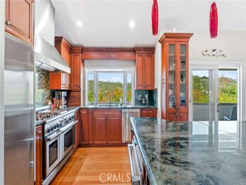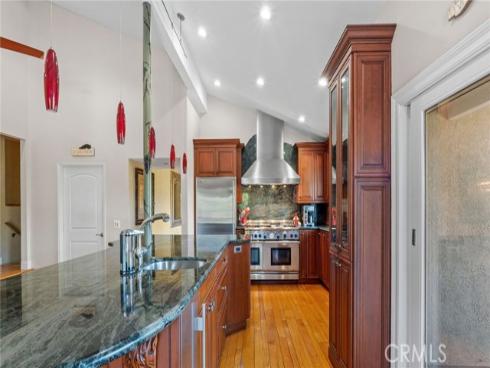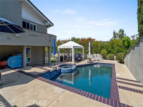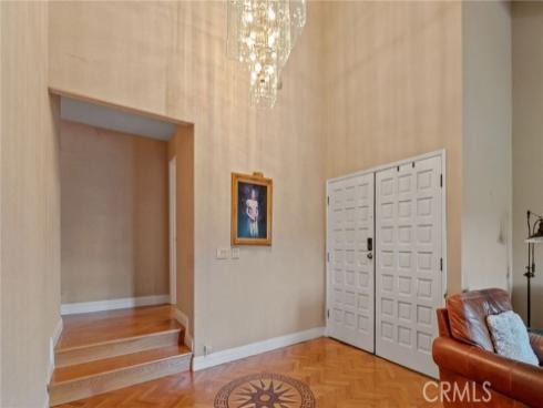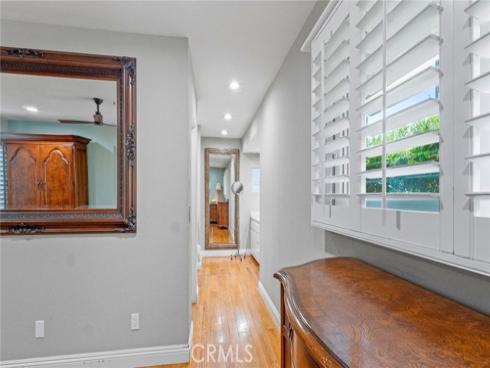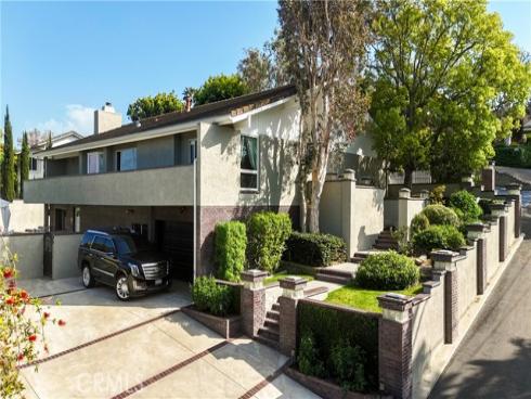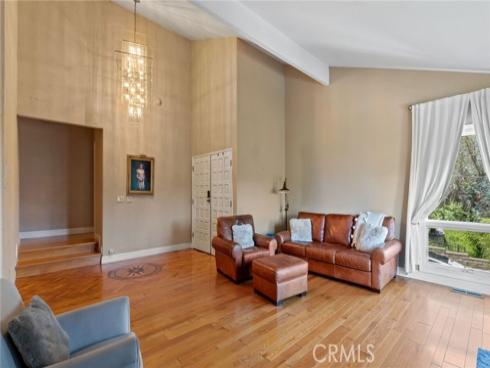 Nestled in prestigious North Tustin, this elegant 4-bedroom, 3.5-bathroom residence offers an impressive 3,400 square feet of well-appointed living space. Uniquely positioned on a tucked away lot off the main streets, this home provides exceptional privacy while showcasing breathtaking views of the surrounding hills. The property features two separate entry points with distinct driveways, providing ample parking space for residents and guests alike - a rare convenience that eliminates parking concerns during gatherings. The versatile floor plan features two separate living rooms - an elegant formal living room perfect for sophisticated gatherings and a comfortable family room ideal for casual everyday relaxation. A dedicated dining room completes the entertainment spaces, offering flexibility for both intimate family meals and larger dinner parties. The gourmet kitchen features a large island that serves as the perfect gathering spot for casual dining and social interaction while preparing meals. Home chefs will appreciate the exceptionally large walk-in pantry, offering abundant storage for groceries, small appliances, Sub-Zero fridge, whole house water filter system and culinary essentials. A standout feature is the versatile large room downstairs, perfectly suited as a dedicated workout space or a private guest retreat that allows visitors to enjoy their stay without interruption to the main living areas. Additional highlights include a refreshing swimming salt water pool and a substantial garage. Located in one of Orange County's most sought-after communities, residents enjoy excellent schools, low crime rates, and a semi-rural atmosphere while maintaining convenient access to shopping, dining, and major transportation routes. The property's secluded setting and elevated vantage point offer an enviable living experience where tranquility and convenience harmoniously coexist. Well-maintained and move-in ready, this home awaits new owners looking to establish themselves in this desirable neighborhood.