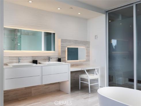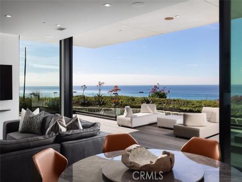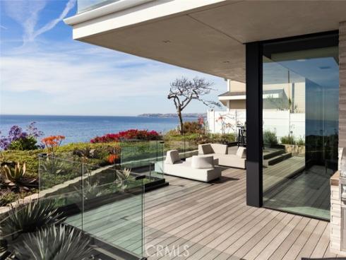 Perched on a picturesque cliff overlooking the ocean, this stunning Mid Century Modern Contemporary 2019-built home offers a luxurious coastal living experience with its breathtaking views and modern design. Boasting 3500 SF of living space, this residence is a masterpiece of upscale finishes and sophisticated elements. The interior exudes elegance with premium stone and wood accents, automated window treatments, and a temperature-controlled wine room, elevating the living experience. The state-of-the-art gourmet kitchen is a chef's dream, featuring high-end fixtures and appliances such as a Décor refrigerator, Miele gas cooktop, and multiple beverage/wine coolers. The spacious island provides a perfect setting for hosting gatherings and entertaining guests, making it a focal point of the home. With three bedrooms, each offering an en suite, the primary retreat serves as a sanctuary for relaxation and rejuvenation. The 10’ ceilings and glass stackable sliders seamlessly blend indoor and outdoor living, allowing for panoramic ocean views from both inside and outside the home. Situated in a prime location overlooking the Pacific, this custom home is just moments away from North Beach, Downtown, and the vibrant San Clemente Pier. Designed with energy efficiency in mind, the property incorporates premium and sustainable materials, embodying a blend of luxury and eco-consciousness. Completing this exceptional residence are three subterranean gated parking spots, ensuring both convenience and security for residents. San Clemente's renowned lifestyle, offering outdoor activities, shopping, dining, pristine beaches, and top-rated schools, adds an extra layer of appeal to this coastal gem.