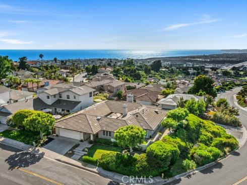 Exquisitely maintained, this originally four bedroom home offers numerous refined amenities on a desirable cul-de-sac location with breathtaking ocean, harbor and coastal hill views. A single level showpiece with 2,224 square feet of living space. Step through the custom teak entry gate into your secure and private courtyard, centered around a gas fireplace embraced by custom French doors. Brazilian hardwood floors extend through the adjacent kitchen, guiding you into a sun-filled dining area illuminated by skylights. The countertops are crafted from Caesarstone and are paired beautifully with Starphire glass-faced cabinetry. Enjoy premium appliances from Wolf, Viking, Jennair, and Monogram. The stunning living room showcases Sisal coconut fiber flooring and a vaulted tongue-and-groove ceiling with surround sound. Relax with sit-down ocean and harbor views through the custom Marvin French doors. A herringbone firebox, accented with a single slab of travertine surround, completes the inviting ambiance. The primary bedroom features expansive glass doors opening to ocean breezes and lay-down sunset views. The main bathroom impresses with a spacious walk-in shower, operable skylight, and a deep Japanese style soaking tub offering mountain and ocean views. Thoughtful details abound, from custom made walk in California Closets to Ginger lighting and heated vanity mirrors. The lavatory bidet is Toto and has wall-mounted controls. A guest bedroom with private access offers an ensuite full bathroom, while two additional rooms have been transformed-one into a tranquil Zen like space with custom Japanese meditation bench and French doors facing a peaceful water feature, and the other into an E-savvy library with built-in cabinetry and a workspace designed to de-clutter cords. Step outside to enjoy a game of bocce ball, then unwind in the private recessed Kiva with a gas fire pit. And there's more: Perimeter camera security system, Interior motion sensors, Audio/Visual E closet, Two tankless water heaters, Automated patio awnings, Epoxy garage floors, Ultra-smooth wall surfaces, Light concrete roof tiles, Deep utility garage sink, Recessed lighting and Upgraded electrical panel. An impeccable home - make it yours.