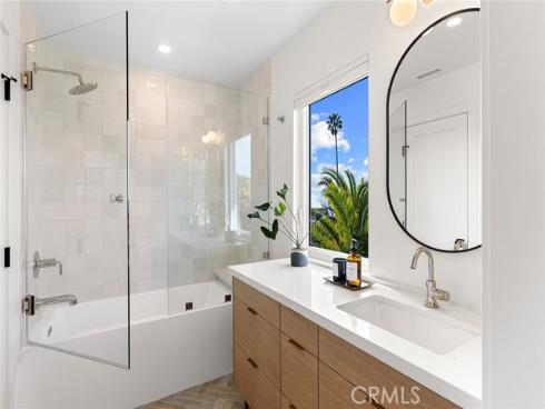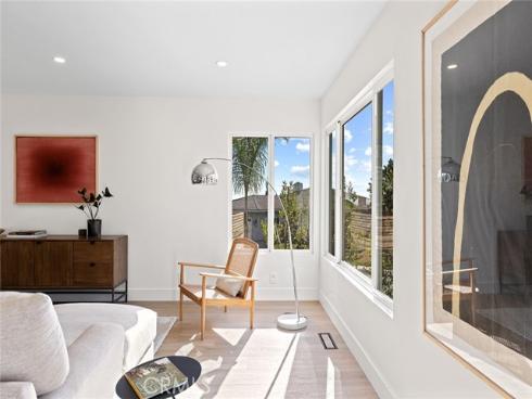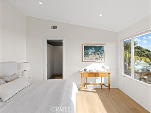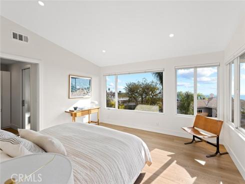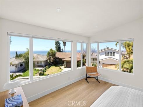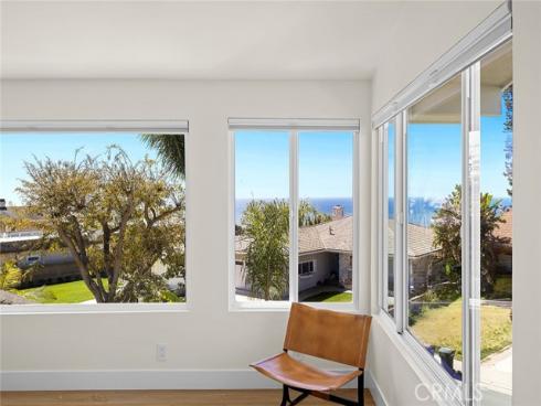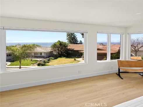Recently renovated throughout with no intention of ever selling, this home is dialed-in at a level rare to come by. Situated in the hills right above downtown, this exceptional location captures ocean views while offering expansive outdoor spaces. A crisp mid-century elevation enhanced by mature palms, ascending clerestory windows, floating top-cast concrete steps, & a beautiful clear-cedar entry door. The front elevation is garnished by new low-maintenance landscaping & old-growth palms. A clean & crisp Scandinavian-inspired interior with abundant natural light draws you inside. Inside, peek ocean horizon views add to the family room warmed by the newly limewash-plastered fireplace. Finished in Oak-like LVP flooring, the family room flows into the dining & kitchen creating one large, open living space. All brand new & hardly-used, the impressive kitchen is newly-finished with Taj Mahal stone counters, quiet cabinetry, brand-new stainless appliances, & polished nickel faucet. The bonus room (potential kids play room or 5th bed) is just off the powder & completes the lower level. Relaxing interiors flow seamlessly into a massive backyard. Al fresco dining & lounging adds to an expansive grassy yard, rare to come by & so desirable. A very aesthetic & newly-rebuilt staircase anchors the home leading to 4 generous bedrooms. 3 guest bedrooms (1 ensuite w/ direct Dana headlands view) access the most luxurious guest bathroom. An operable skylight tempers the second floor. The primary suite features walls of glass framing crisp ocean horizon, sunsets, & Catalina Island views. An all-new, spa-like bath features a curbless shower with dual heads, dual sinks, aesthetic finishes, & high-end polished-nickel fixtures. The walk-in closet offers clever clothing organizers. NEW Improvements: 7.447KW solar w/ 2.0 net metering & 25-yr warranty, 125A panel, cooling-shingle roof 2023 w/ Velux skylight, ducting, dual-zone A/C, fully re-piped & re-wired, all lighting, all flooring, base & casing, doors & hardware, entry door, all bathrooms, kitchen, stairwell, entry stairs, landscaping & irrigation, fencing, dog-washing station & stackable laundry. An amazing opportunity combining several major values: significantly renovated top-to-bottom, major space inside/out, major ocean & coastline views, no power lines, extremely quiet yet easily walkable to downtown restaurants & cafes, bikable to world-class surf at Trestles, nearby 2.5 mile beach trail, SC Pier & sandy beaches.