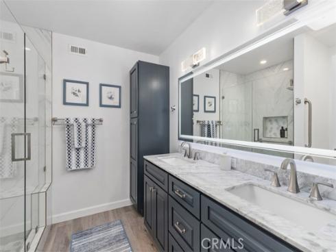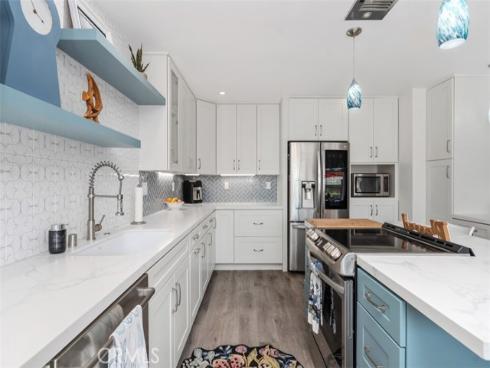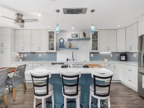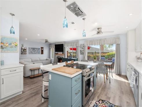 Welcome to this fabulous coastal Single-story home in highly desired Seascape Village. Situated on the ocean side of I-5 Freeway in San Clemente this 3 bedroom 2 bath home is fully remodeled and upgraded attached home. It has fully redone kitchen with white shaker cabinets, quartz counters, new appliances built-n and custom blue tiles and decorative shelves to highlight the large kitchen space with pendant lighting and indirect lighting throughout the home. The large family room has newly remodeled fireplace, indirect lighting, lots of windows and light. This home has newer dual pane windows and central air conditioning and heating and ceiling fans through-out. It has manufactured wood flooring throughout, double entry doors to large living room, and glass french doors open from the entry into the spacious music room/bedroom . The hall bathroom has been completely remodeled with new soaking tub and custom tiles for the shower, and new vanity, mirror, and custom lighting. There is a large master bedroom and large walk-in closet. The master bathroom has a new double sink vanity and custom mirror lighting. There is a new walk-in custom tile shower and new Bidet toilet. The 3rd bedroom has views of the front yard and full closet. The home has been re-piped with pex piping in the past. This home is attached on only one side and has windows & views of the community from 3 sides, It has a large sitting patio off the dining area and views of the greenbelt and sunsets. Residents of Sea Scape Village enjoy Three pools, a jacuzzi, Pickle ball, tennis courts and a clubhouse all for your enjoyment and lifestyle. The community is walking distance to Shops, Sprouts, TJ Maxx, and Home Goods, and close to Dana Point Harbor and restaurants and Outlet shops at San Clemente.