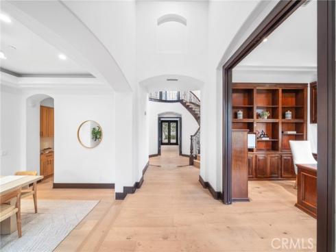 Stunning completely remodeled residence that seamlessly blends luxurious design with breathtaking views of the prestigious Talega Golf Course and surrounding mountains creating an unparalleled, strikingly sophisticated living experience. Inside, find an exquisite floor plan that checks all the boxes. With exceptional attention to detail, and high-end finishes throughout, this home begins with a custom office that has great natural light and is a perfect quiet retreat. Opposite is a spacious formal dining room and beyond is a central rotunda with a dramatic curved staircase. Next find a light and bright formal living room with a striking focal point fireplace and great light from a large view window and French doors out to the deck. A chef’s dream, the custom kitchen features a large waterfall island, high-end appliances, and exquisite finishes. A casual eat-in nook with patio access adjoins a large family room with great light from view windows out to the entertainer’s patio. A downstairs ensuite bedroom, an updated guest bath and an interior laundry room complete the lower level. With two staircases, including a dramatic spiral staircase, the home flows effortlessly, giving you both style and function. Three cozy fireplaces, including one in the primary bedroom, add warmth and charm to the home’s inviting atmosphere. Each bedroom comes with its own ensuite providing luxurious convenience for family members or guests. With custom finishes, ample closet space, and large windows that frame picturesque views, these bedrooms offer the perfect blend of elegance and functionality. The primary suite offers sweeping views, a private retreat that includes a cozy fireplace, a spa-like ensuite and ample walk-in closet space. Picturesque views of the golf course and mountains from the backyard provide a tranquil oasis, perfect for enjoying our beautiful Southern California weather. Whether you’re relaxing by the fire pit, dining on the patio, or simply soaking in the scenery, this home is designed for the ultimate in coastal luxury living. A 3 car garage and a large driveway, along with countless other thoughtful details, make this home a true gem. With its prime location on the 6th tee box at Talega, gorgeous design and luxurious amenities, this home is more than just a place to live—it’s a complete lifestyle. Talega offers a wealth of amenities designed to enhance your lifestyle and provide endless opportunities for recreation and relaxation.