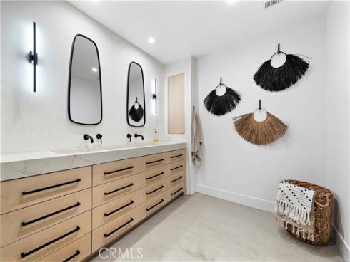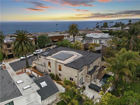 Exquisitely designed, luxurious ocean view residence located in the highly sought after Cyprus Shores neighborhood of San Clemente. The modern 5 bedroom home exudes warmth with an abundance of windows, high ceilings, and the incorporation of natural and unique textures throughout. The large open concept floorplan offers an impressive gourmet Kitchen with top of the line appliances and bar seating overlooking the pool, a spacious Family Room, Dining Room and Living Room with an impressive floor to ceiling fireplace, downstairs en suite bedroom, and four bedrooms upstairs including the handsome Master Retreat. Step outside to the dreamiest backyard complete with a custom black bottom pool and spa with waterfalls and waterslide, built in concrete firepit and seating area, and custom built in BBQ area with an extra large bar, wine fridge, ice box, and dual kegs. Both side yards are oversized and extremely functional with pool equipment, dog run, and trash area on one side and an outdoor shower and surfboard/wetsuit rack on the other. Access the second story via the stairs or elevator. The expansive Master Retreat is complete with an ocean view wrap around balcony, built in coffee and wine bar, and jaw dropping bathroom with soaking tub, walk in shower, and walk in closet. Enjoy year round sunsets and views of the Dana Point headland from the balcony. The three secondary bedrooms are all well sized, two share a jack and Jill bathroom, and the other is adjacent to a stunning hall bathroom. The three car garage is complete with built ins and epoxy flooring. The residence has paid in full solar panels and currently no electric bill. Truly appreciate all the community has to offer with both community pools and tennis courts down the street, a few minutes walk to the private beach access at North Gate or private beach access at Cottons Point South Gate, and privacy with the 24 hour guard gated access. Ride to Trestles in less than 10 minutes or head to downtown San Clemente to shop and dine. Don’t miss the opportunity to own a spectacular house at the beach!
