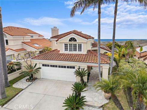 Ocean views and a spacious two-story floorplan are destined to enhance your lifestyle at this open-concept home on a quiet cul-de-sac street in Rancho San Clemente’s beautiful Bella Vista neighborhood. Embraced by a large elevated homesite of approximately 7,500 square feet on a single-loaded street, the inviting turnkey residence presents scenic views of the Pacific Ocean and rolling hills by day, and twinkling city lights after sunset. In the front, timeless Mediterranean architecture joins graceful palm trees of all sizes, custom hardscaping and a welcoming entry to create a memorable first impression. Out back, ocean views complement a sunny stone patio with built-in barbecue island, creating the perfect spot for enjoying Southern California’s renowned weather. Three bedrooms and two-and-one-half baths are featured in approximately 2,100 square feet of stylish living space that includes a dramatic double-height foyer, a living room opening to the backyard via French doors, and a dining room with bay window and mirrored accent wall. A fireplace warms the family room, which flows seamlessly to a bright kitchen with garden window, white cabinetry with glass uppers, a breakfast bar, pantry, tray ceiling with crown molding, and KitchenAid appliances. For the ultimate convenience, the grand primary suite is located on the first floor and boasts French doors opening to the backyard, one traditional and one walk-in closet, and an elegant bath with skylight, soaking tub, separate shower and two sinks. Upstairs, the third bedroom displays an open-beam ceiling and a wall of custom built-ins, creating a fabulous bonus room space. Bathed in natural light, the move-in-ready home showcases vaulted ceilings, tile and wood flooring, plantation shutters, mirrored wardrobe doors, an interior laundry room and an attached two-car garage. Close to Rancho San Clemente Park, Bella Vista is convenient to excellent schools, San Clemente’s beaches and pier, and the popular restaurants, stores and theaters at Outlets at San Clemente.