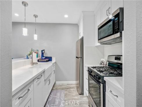 Welcome to this updated home in the sought after area of South Coast Metro. It is directly across the street from the Segerstrom Performing Art Center and walking distance to South Coast Plaza. This 2 bedroom/2 bath condo is all single level, on the first floor—no stairs! The primary bedroom features an ensuite bathroom. The home also has a spacious living room connecting to the private patio area which is great for BBQ's and family gatherings. The home has a freshly painted interior, quartz counters & island in the kitchen with stainless steel appliances. The bedrooms have new plush carpets and ceiling fans. The remaining rooms have luxury vinyl planks throughout the kitchen, dining, family room, bathrooms and hallway. It has an outdoor storage closet, off the front door. Included is a covered carport and an unassigned, permitted open parking space. The homeowner's association includes 2 pools--a pool with a wading pool and an adult pool and spa, water, gas and trash service and a community laundry. Convenient freeway access to the 405 and the 55 freeways. Enjoy this great area—shopping, dining, entertainment and a great location to all OC has to offer. Excellent opportunity for home buyers and investors alike! Come check it out!