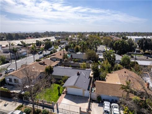 This stunning, fully renovated open-concept home offers modern comfort and energy efficiency in a peaceful neighborhood. NORTH FACING. Gorgeous kitchen with stainless steel appliances (new range & dishwasher), apron sink, soft-close shaker cabinets and quartz countertops. Energy efficient improvements like a PAID-OFF 4 kW solar electric system (2023), newer Owens Corning roof with 50 year material warranty (2022) and recessed LED lighting throughout. Beautifully updated laminated floorings, baseboards, crown moldings, interior doors, closet doors, exterior door, garage door, sliding door, fire grade door and double-pane windows. Custom tiling of the fireplace. Designer interior and exterior paint. Both bathrooms were tastefully renovated to include: tile floorings, modern tile showers, vanities, fixtures and primary shower glass door. The house is equipped with central heating and air. The lushly landscaped and gated front & backyard surrounded by block wall fencing, abundant with fruit trees (avocado, mango, citrus, etc.), creates a serene outdoor retreat, while the great room and dining area seamlessly extend to the concrete patio, ideal for entertaining. GARDEN GROVE UNIFIED SCHOOL DISTRICT. Walking distance to Russell Elementary, Santa Ana River Trail, tons of shopping and dining, this home provides both convenience and exceptional living!