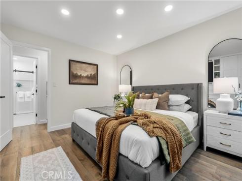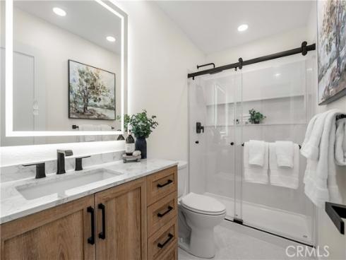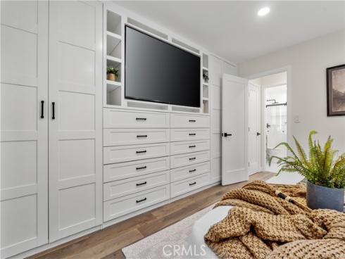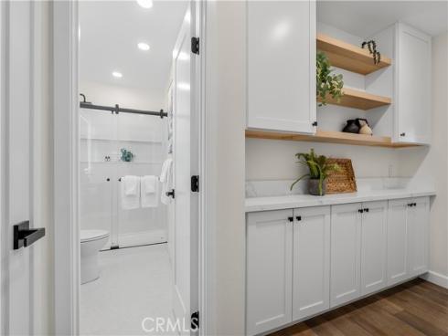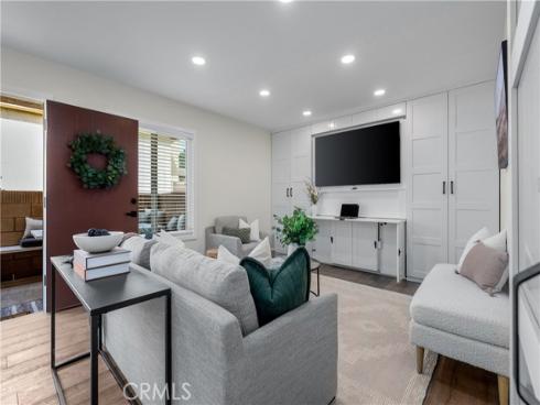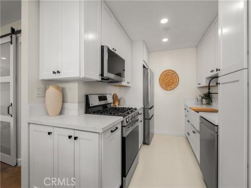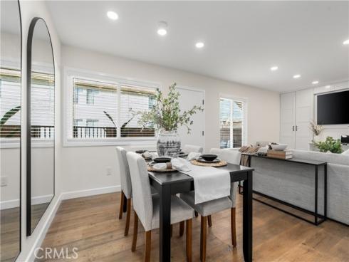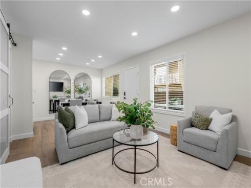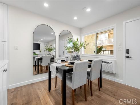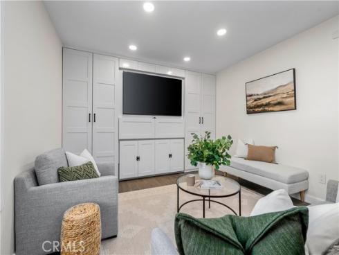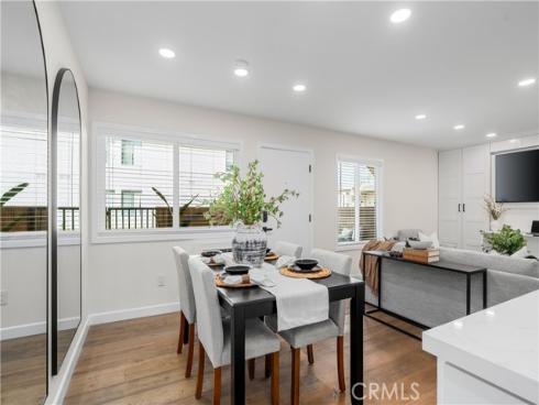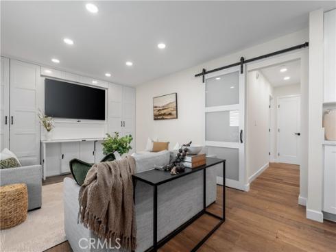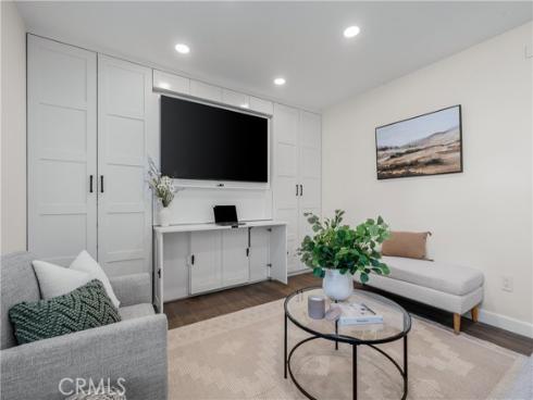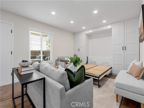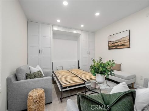 Immerse yourself in smart luxury with this beautifully updated 1-bedroom, 1-bath condo. With modern conveniences tied seamlessly into the design, this home is an elegant fusion of style and functionality. Enhanced with Philips Hue recessed lighting throughout the home which carefully curated design feature not only provides superior illumination but also adds an ambience of luxury. The intelligent layout features a built-in entertainment center complete with a versatile Murphy bed and desk in the living room, offering flexibility for hosting guests or work-from-home arrangements. Enjoy the 65” smart televisions housed, not only in the spacious living room, but also in the serene primary bedroom which includes a custom wardrobe. Treat yourself to restaurant-grade meals prepared in your exquisite, brand new gourmet kitchen featuring white shaker cabinets, a farmhouse sink and smart appliances. Relax in your modern bathroom boasting matt black fixtures & hardware. Unlock a world of autonomy with a smart lock on your front door that triggers mood-setting automations in your home, providing a personalized atmosphere at your command. The primary bedroom separates itself from the main living areas with a frosted glass barn door, providing privacy without compromising on style. Stepping out to the patio reveals a custom fitted bench and table, blending indoor and outdoor living. This condo has been professionally decorated to deliver a warm and inviting environment.