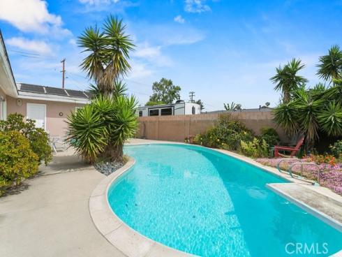 This home has a great floorplan with unlimited possibilities with 3 large bedrooms, 2 bathrooms, approximately 1500 square feet on an approximately 7900 square foot lot. The wide frontage features potential RV parking next to the two car garage. Enter the front walkway with lush landscaping to the large living room with brick wood burning fireplace with a raised hearth. The kitchen features walnut wood cabinetry with self close doors and drawers and a farmers sink set in front of the window. The stainless steel gas stove is set between the butcher block counters facing the dining area. The large slider opens to the patio and freeform pool with newer filtration equipment and solar heat. The garage is direct access from the kitchen where there are several cabinets for storage and an enclosed laundry area. This also has a door to the back yard and the pool. The hallway with large slider closet and open linen storage leads to one full bathroom with tub and shower combination and pedestal sink. The two right bedrooms have vinyl flooring and double slider closets. The primary bedroom on the right also has vinyl flooring with an ensuite bath with a full wall closet and tile shower. This bath also has a door to the patio, convenient for everyone when using the pool. Behind the house is a large relaxation area with low maintenance artificial turf and no neighbors behind. Capital improvements include the tankless water heater, vinyl windows and slider, paid solar for the pool, upsized main water service, and 200 amp electrical panel. This home is in the Sequoia elementary school attendance area, close to shopping and transportation corridors.