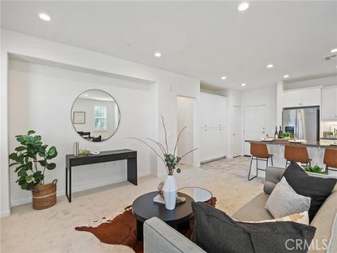 Welcome to the City of Brea's planned community of La Floresta built in 2016. Walking distance to the Whole Foods, Restaurants and Shops. 3382 Merida Ln is 2 bed/2bath condo located on the 3rd floor with no attached common walls on the side. Balcony and master bedroom is south facing, brings natural lights, private and has view of Whole Foods shopping center. 2 car detached garage on the main level and building is equipped with Elevator. Inside Side-by-Side washer & dryer and stainless appliances. Community has Pool, BBQ and Picnic area for all family gathering.