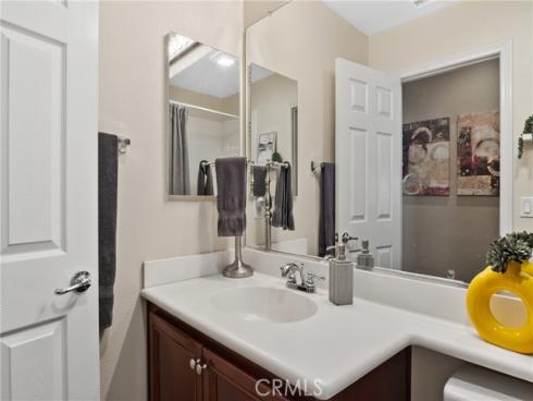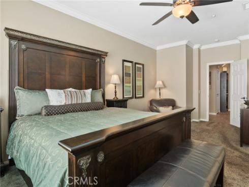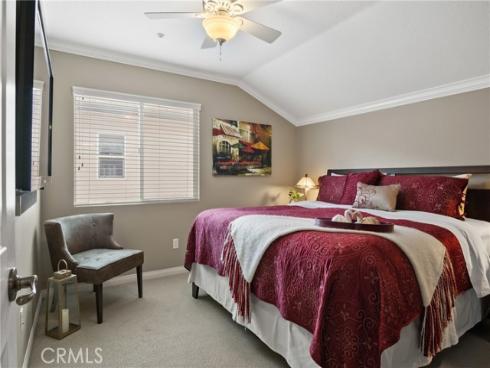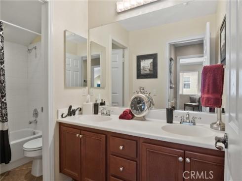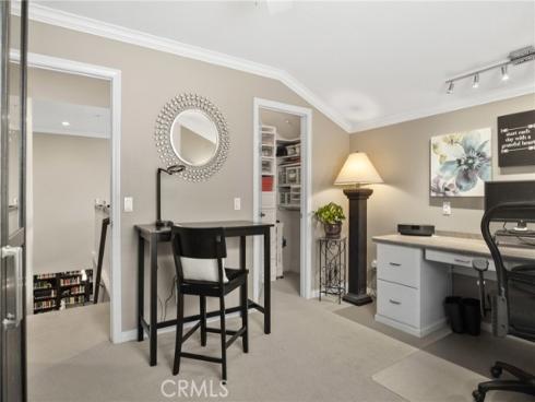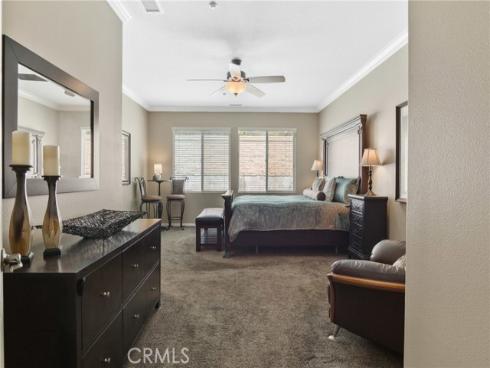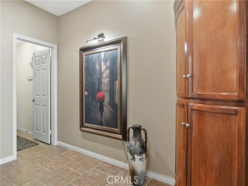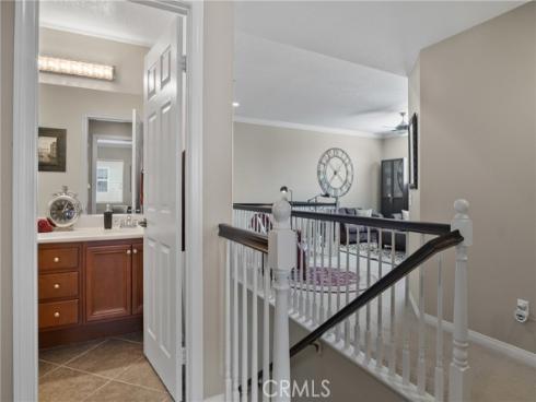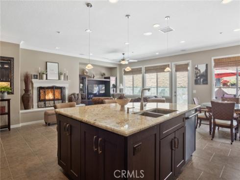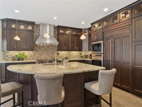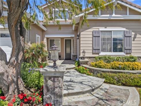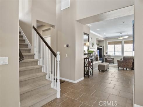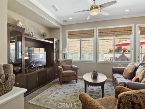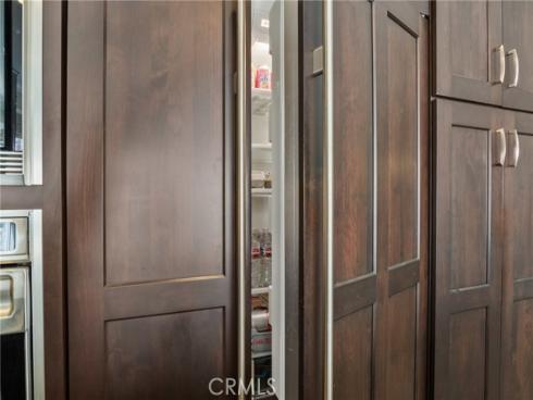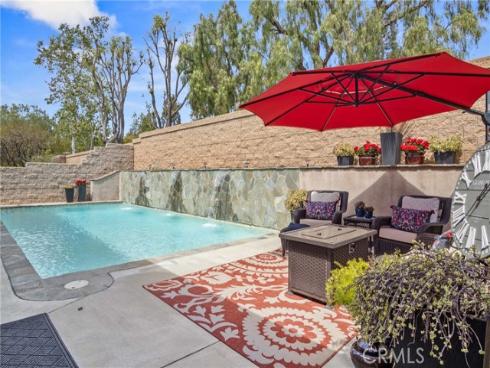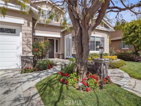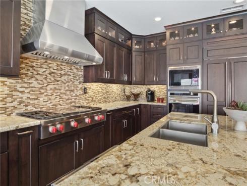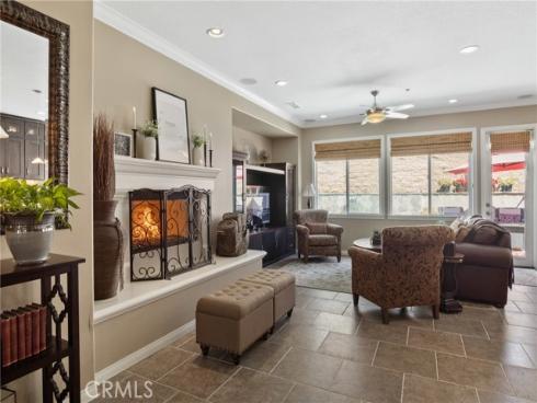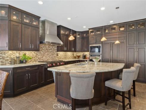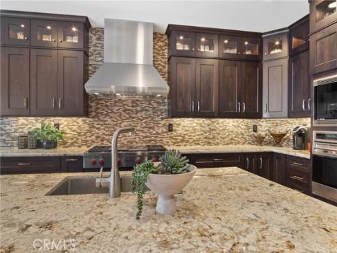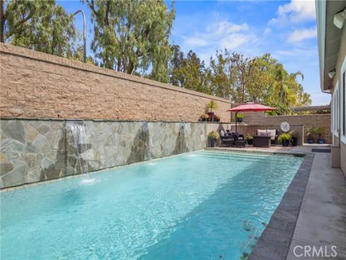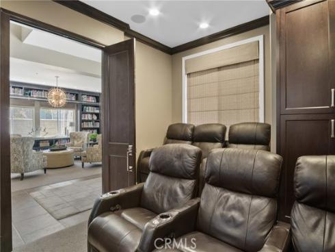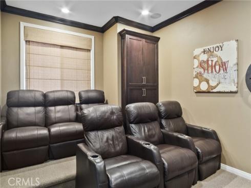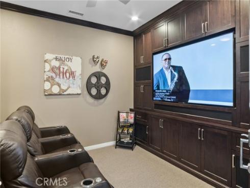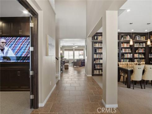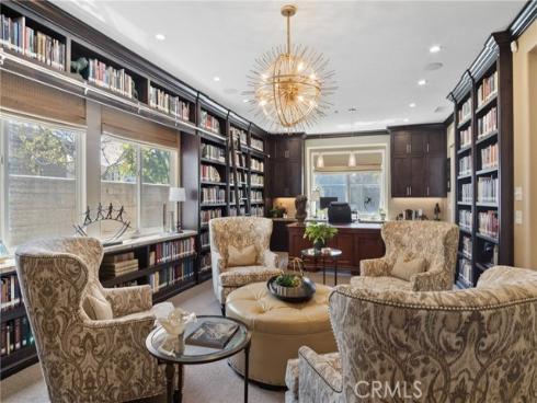 ~WOW~WOW~WOW~ You'll love everything about this luxurious home. The beautifully landscaped front yard welcomes you with its lush lawn, stone walkway, & vibrant flowers. You'll be instantly impressed with the custom, built-in Huffman Library, complete with a rolling ladder. The library is as beautiful as it is functional: with gorgeous, hand crafted Alder wood floor-to-ceiling shelving & a large open area, perfect for gatherings or quiet enjoyment. The space includes a built-in executive office area with soft close cabinetry & separate entrance via french doors. Across the entryway the media room, which could serve as a 4th bedroom, is a true home theater with tiers for seating. The entire library & media room share a built-in sound system that can be paired with the kitchen/dining/back yard for cohesive music throughout. The amazing chef’s kitchen has it all: granite countertops, top-of-the-line appliances including WOLF brand built-in stove with indoor grill, stainless steel hood, dual microwave & convection oven, & separate multifunctional electric oven, self-lit Thermador dishwasher with its own water softener (ensuring sparkling clean dishes) & built-in SUB ZERO brand fridge & freezer. The soft-close cabinetry has large slide-out pantry shelving & deluxe display windows. The huge kitchen island with a deep, stainless steel sink faces the dining & sitting areas where guests can enjoy hors d'oeuvres by the fireplace (with glass fire pebbles) or the tranquil pool fountains. Custom under-lighting creates just the right ambiance. The stunning primary suite downstairs includes a seating area, view of the heated pool, double sink, large walk-in shower & custom wardrobe in the large walk-in closet. The ceilings downstairs are 9 feet, adding to the elegance of this home. The laundry room with utility sink is on the way out to the 3-car garage, which has direct access & tandem parking. Upstairs, the loft provides a lovely retreat & you’ll see that the 3rd bedroom is currently used as a home office. The guest quarters feature a pristine bedroom & bathroom with double sink. Inside the guest closet is an access door to a large attic storage area. This quality home is furnished with vinyl double glazed windows, ceiling fans, & a zoned HVAC system for optimal comfort. It’s located in the highly desirable Olinda Ranch HOA with its own park featuring a skate park & more. Also less than a mile away are Wildcatter Dog Park & the incredible Carbon Canyon Regional Park.
