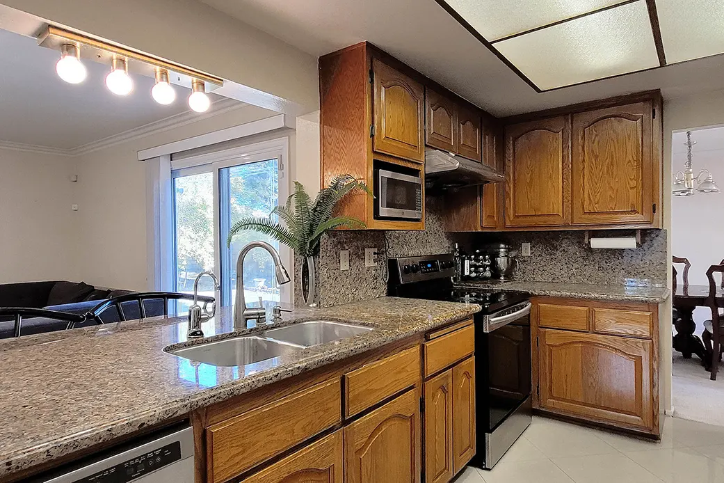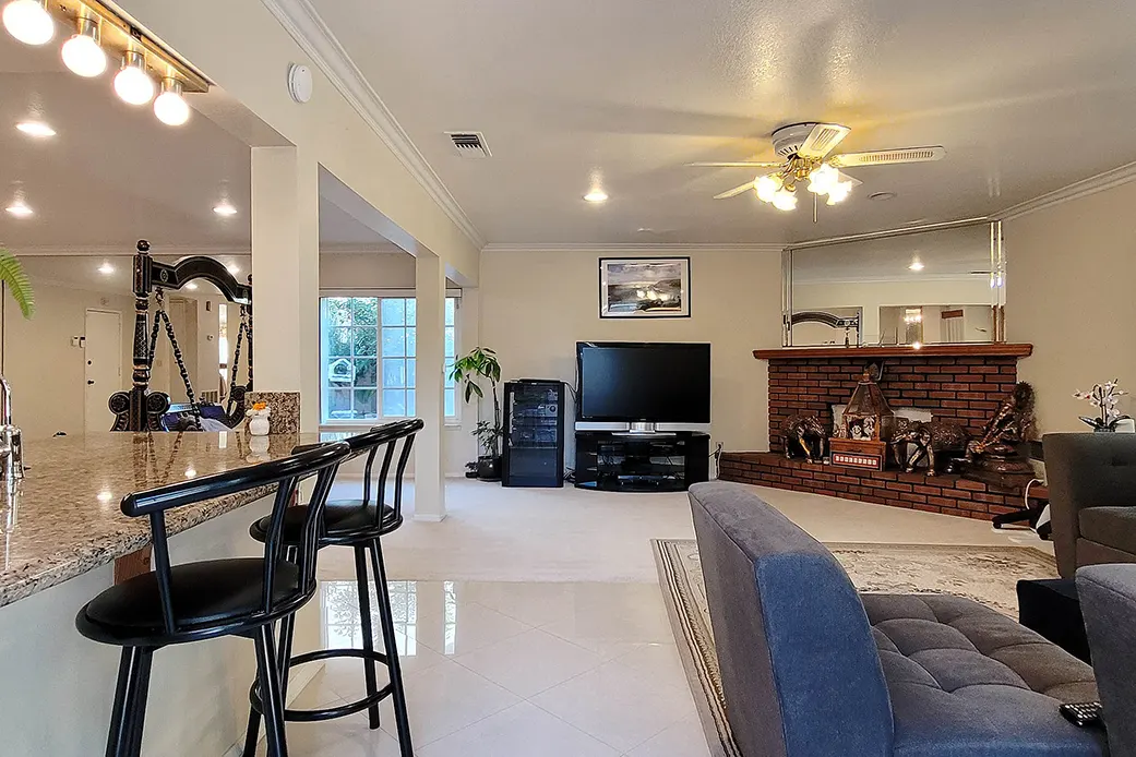 Extremely hard to find, double master suite and 3 car garage. This exceptional 5 bedroom, 3.5 bath single family home has some very important exterior updates, tile roof, double pane vinyl windows and doors, and stucco. The bright interior has a very open floorplan with kitchen open to an enormous great room with gleaming marble tile flooring and brick fireplace. The kitchen has lots of cabinet space and two granite breakfast counters with a view to the large back yard. In addition, there are spacious formal living and dining rooms with a 2nd fireplace. Up the magnificent open stairway there are two huge master suites, three large bedrooms and a total of 3 full bathrooms. All of the rooms are bright due to the big windows. The ABC School District is one of the best in the State, and this house is in the attendance area for Whitney High School, rated the Number 1 High School in CA in 2022. This home is in a very convenient location, within walking distance from Cerritos Town Center with all of its attractions - Performing Arts Center, Movies, Restaurants, lots of shopping including Trader Joes and Walmart. Notes: The front door is far right of the T-Zone; house was measured at over 3320 sq ft, however the tax record states 3098 sq ft.