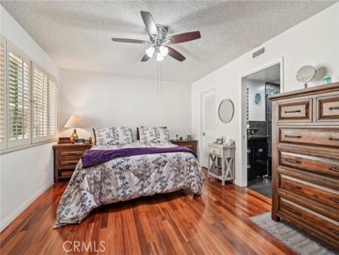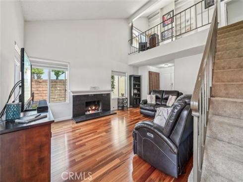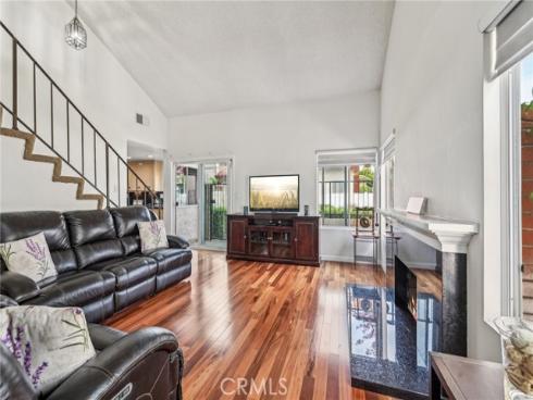 JUST REDUCED!!! Living in the Heart of Cypress Village! Welcome to this beautifully upgraded 3-bedroom, 2-bath home located in the highly sought-after Cypress Village community. As you enter the home, you'll be greeted by soaring ceilings, Brazilian Tigerwood flooring, and a stunning granite-faced fireplace with a custom mantle—setting the tone for comfort and elegance. The Milgard double-pane windows and Hunter Douglas window treatments flood the space with natural light and frame the view of the open loft above. The main-floor primary suite offers privacy and style with Mahogany double doors with glass panels and a spacious walk-in closet. The open-concept kitchen, featuring porcelain tile flooring, granite countertops, custom cabinetry with soft-close drawers, under-cabinet lighting, and stainless steel appliances. Upstairs, the versatile loft area is perfect for a home office or a creative space. Enjoy all the amenities Cypress Village has to offer: 3 pools, 3 clubhouses, a huge spa, pool, tennis and pickleball courts, lush greenbelts, and scenic trails. Located in the top-rated Garden Grove School District, this home is just minutes from famous Orange County beaches. Low HOA of $399/month, Don’t miss your opportunity to live in Cypress Village!