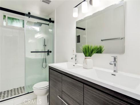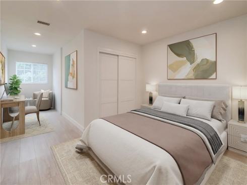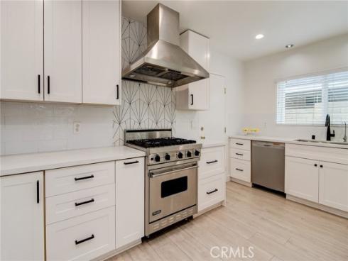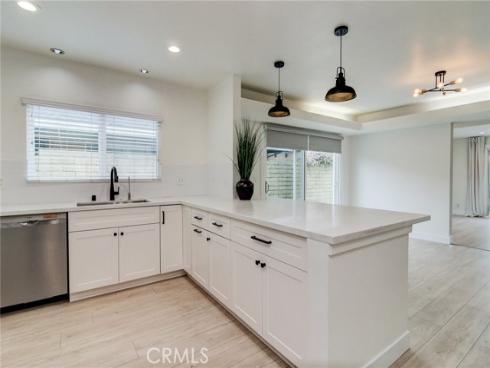 Fantastic purchase opportunity on this gorgeous 3 br 2 ba single story home in the heart of Cypress with paid off solar and in immaculate move-in condition. Great curb appeal, fresh interior two tone painting, neutral LVP flooring throughout the home, completely remodeled chef's kitchen with white cabinets, quartz countertops, subway & decorative custom tile backsplash, stainless steel Viking stove & stainless steel appliances, dual pane windows and sliding glass doors, forced air heating and central air conditioning & paid off water softener. Wonderful single story floor plan with spacious living/great room with accent wall, 2 sets of sliding glass doors leading to the backyard and side yard with infusion of natural light, bright & open kitchen with quartz counter peninsula/ breakfast counter & pendant lights above, dining room with sliding glass doors leading to the side yard, accent wall lights in living room and dining room, huge primary bedroom with walk in closet and sliding glass doors leading to backyard, bedroom with desk/ play area nook. updated primary bathroom with floating vanity and custom tiled shower, updated hallway bath with dual sink vanity & mosaic tiled shower, recessed lights throughout, 2 car attached garage with direct access, beautiful landscape with sprinklers on timer, and a private backyard & outdoor covered patio area for entertaining. Location convenient to popular schools, shopping, restaurants, and freeways. Don't miss out!