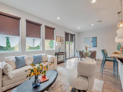 Located in the prestigious community of Oxford Row in the city of Cypress, this luxurious and fully upgraded residence offers an exceptional living experience in a neighborhood known for its top-rated schools. This beautifully designed home features 3 spacious bedrooms, a dedicated office space on the second floor, and 2.5 bathrooms. From the moment you step in, you're greeted with soaring ceilings and an open-concept layout seamlessly connecting the kitchen, dining, and living areas perfect for entertaining or family gatherings. Step outside to a well-sized backyard, ideal for creating your own private retreat or enjoying quality time with loved ones. Energy efficiency is a highlight with a fully paid-off solar system, significantly reducing energy costs. Additional energy savings come from Nest smart thermostats, easily controlled remotely for convenience and efficiency. Oxford Row offers unbeatable location perks walking distance to the renowned Oxford Academy, as well as restaurants, financial institutions, parks, a public library, entertainment venues, and sports facilities. Enjoy community amenities with only $213 HOA fee. Dont miss the chance to live in one of Cypresss most desirable neighborhoods!