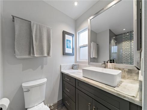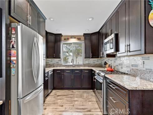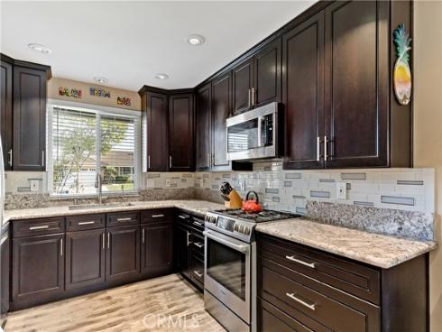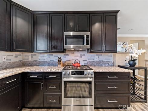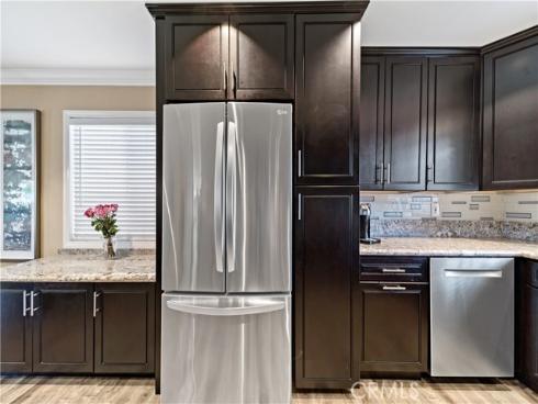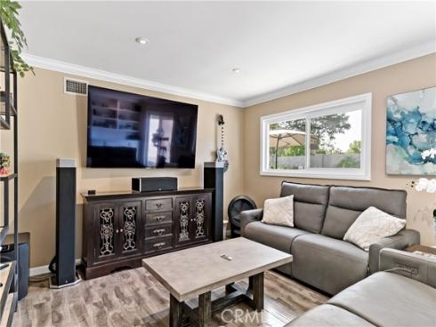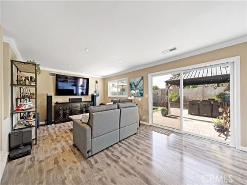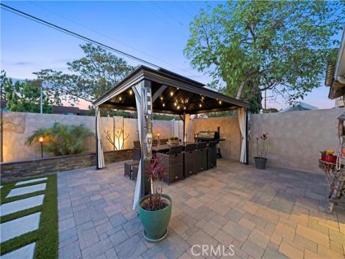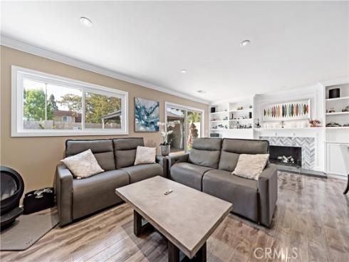 BACK ON THE MARKET! BUYERS WALKED DUE TO NO FAULT OF THE SELLERS. This is THE ONE! EVERYTHING has been done to this home in the last several years with exceptional quality. HVAC system by Trane, New water heater, smooth ceilings, custom recessed lights, new pex plumbing (2021), ceiling fans (with remotes), dual pane Milgard Windows throughout, New 200 amp electrical panel (labled), Lutron light switches, engineered wood floors, custom crown molding & baseboards in every room, a top-of-the-line remodeled kitchen complete with Bosch appliances (except the fridge), both bathrooms have been highly renovated & feature custom marble countertops, sinks, mirrors, vanities, & hidden medicine cabinets! The master shower was completed with glass tiles & a tile inlay. The living room has twin custom-built-in bookshelves with storage cabinets below. All outlets are hidden within the cabinets for a seamless look! Between the cabinets is a fireplace with a modern art-deco look and custom tile inlay surrounding it. Stone gray tiles create the hearth, & there is custom millwork at the mantle. In addition, the home has access to the garage under the breezeway, & the garage is outfitted with a Tesla charging station & built-in storage. Externally, the owners spent thousands of dollars! All the windows have custom stucco trim work, & there is no exposed wood at the trims. The home's exterior was painted, there are rain gutters, a custom drainage system in the backyard, raised planter beds with custom stonework & edge-caps front & back, custom pavers with faux grass inlay in the backyard, stuccoed block walls, exterior lighting, & more! The City of Cypress forbids large commercial trucks from traveling along Orangewood, the street this home backs up to! There are only residential homes on both sides of Orangewood from Knott to Valley View, meaning it is a quiet area and the street has little traffic noise! Then, of course, there are the award-winning schools! This home attends the Garden Grove School District & is designated for Patton Elem. (Gate program offered), Bell Middle School, & Pacifica High School, known for its award-winning FX program, athletics, and high-achieving academic programs! This home has it all! See it today! ALL OFFERS WILL BE PRESENTED ON MONDAY JUNE 30TH
