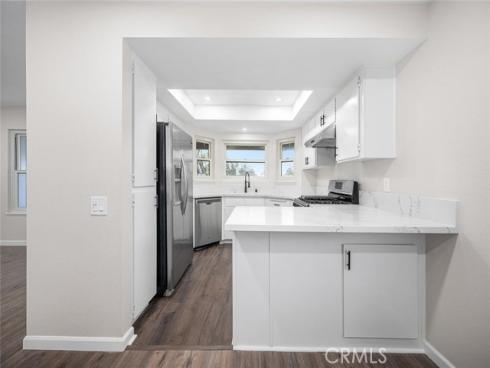 Welcome to the Tranquil Community of the Influential Townhomes Freshly painted and beautifully upgraded, this charming 2-bedroom townhouse is situated in a quiet, serene complex surrounded by mature trees and breezy pathways. The inviting living room features a cozy fireplace, while desirable waterproof vinyl laminate flooring flows throughout the home. The updated kitchen boasts stunning new quartz countertops and includes a gas range, refrigerator, and dishwasher. The remodeled bathroom adds a modern touch, and the spacious primary bedroom offers a walk-in closet and a remodeled separate vanity area for added convenience. Enjoy year-round comfort with central heating, air conditioning, dual-pane windows, and recessed lighting. Step outside to relax or entertain on the expansive exterior deck. This home includes a single-car garage and an additional carport space. Residents can take advantage of the community's HOA amenities, including a pool and spa. Located in a top-rated school district and close to parks, shopping, and public transportation, this home offers the perfect balance of comfort and convenience.