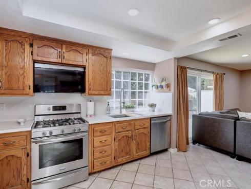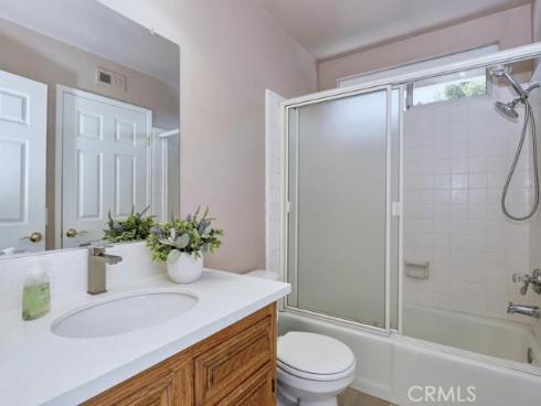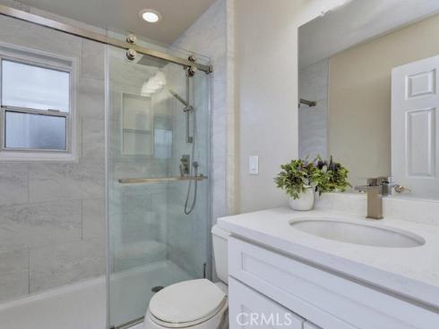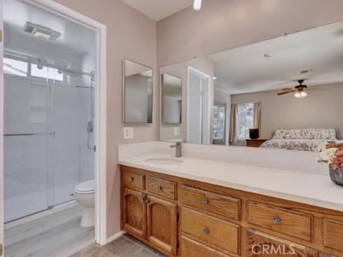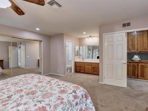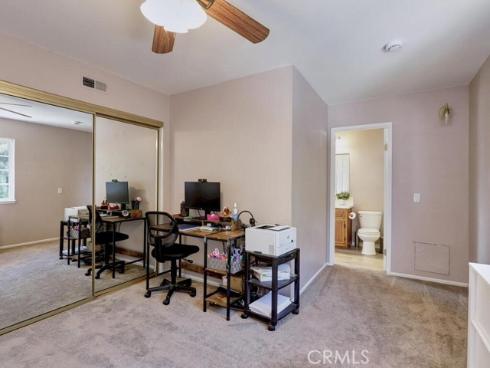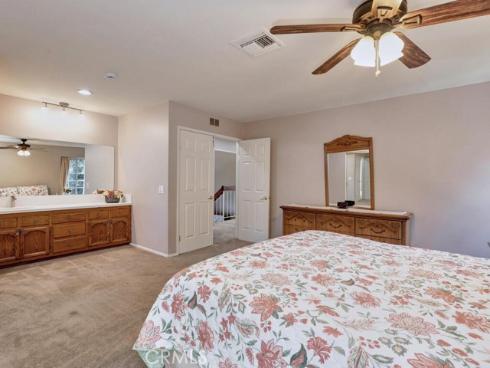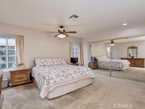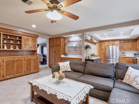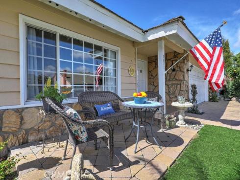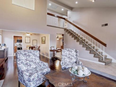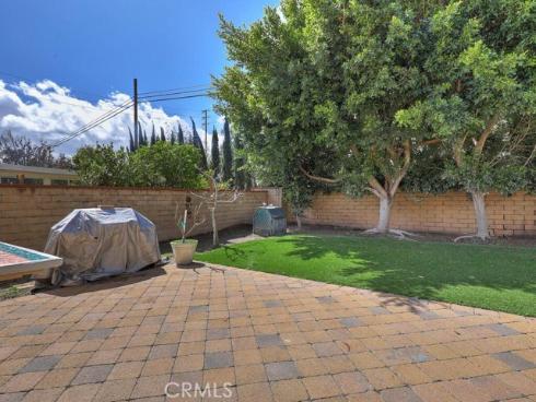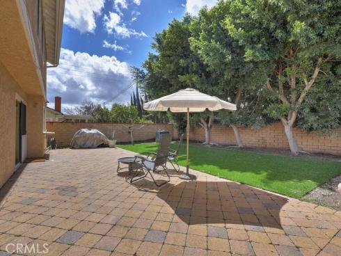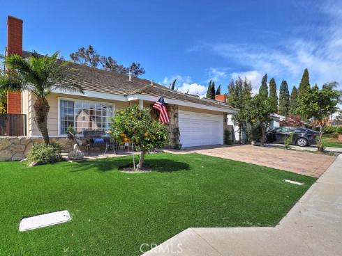 Come on over to this outstanding family home in the heart of Cypress. Excellent location in a private cozy neighborhood, on a cul-de-sac, East facing with pride of ownership neighbors all around. Great curbside appeal, custom pavers at the driveway, pathway and a welcoming courtyard. Cement tile roof, dual pane windows all around, upgraded Astroturf added front and back and you still have a small grove of fruit bearing trees tucked in around the house. Double door entry ushers you onto a raised ceramic tile entry overlooking formal living and dining rooms with soaring ceilings, dark wood plank flooring and a floor to ceiling Palos-verde rock fireplace. This 4-bedroom 3-bath home is beautifully designed to accommodate generational or large or "work from home" families, with plenty of space for everyone. An open concept Kitchen/Family room is across the back of the house with a nice slider that easily flows to the back yard for entertainment and relaxation. The kitchen has brand new quartz countertops and plenty of cabinets for storage, including a matching built-in wet bar and entertainment center all made of gorgeous original hardwood. New oven, new microwave and new dishwasher and the refrigerator all stay. Recessed lighting throughout. There is a downstairs bedroom and a 3/4 bath with a brand-new walk-in shower, new glass barn door enclosure, new vanity, new quartz top, new paint. The upstairs primary bedroom is huge with an extra-large mirrored wardrobe completely finished by closet world. Ensuite bath has a brand-new walk-in shower, fixtures, glass barn door enclosure as well! separate vanity has a brand-new quartz countertop. Jack and Jill bedrooms are ample size with good closet space with a full bath in-between. The floor plan on this home is excellent. There is a newer AC/FA system and Copper pipe. The back yard is good sized, with a small garden and mature trees at the back for privacy. The fruit trees include Myer lemon, blood orange, grapefruit, fig and pomegranate. Walking distance to Cypress High School and this location also allows testing into Oxford Academy.