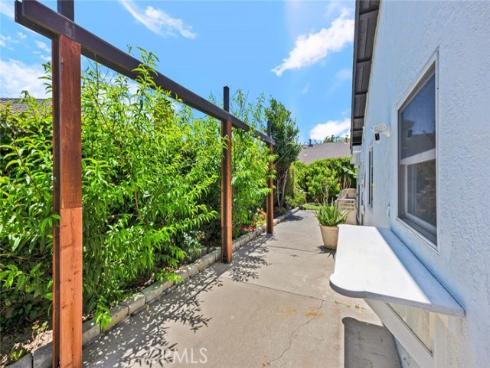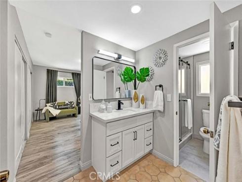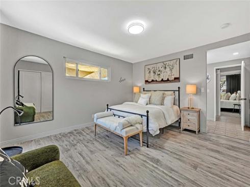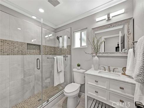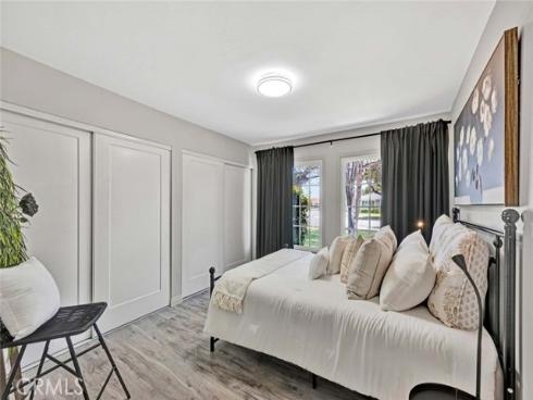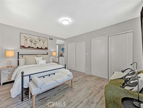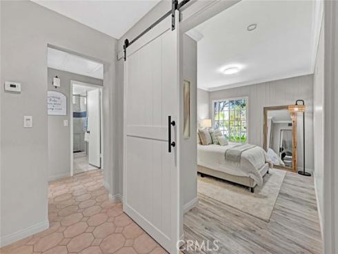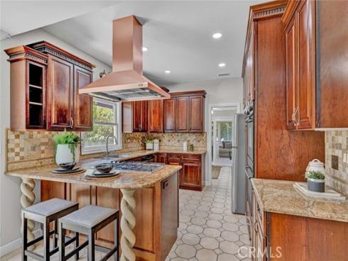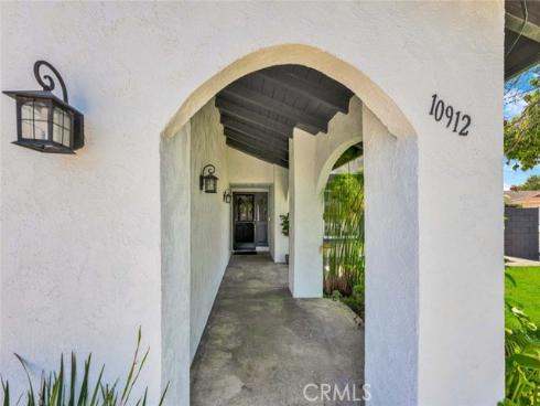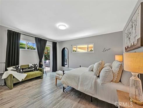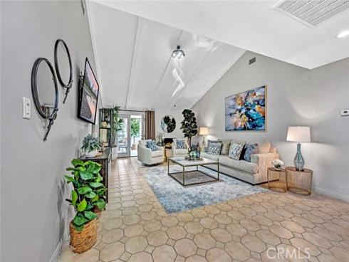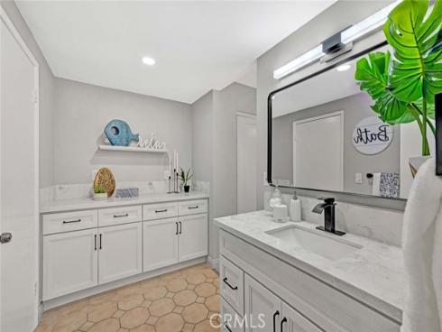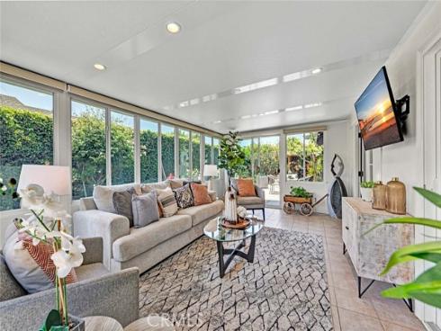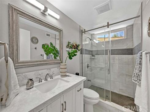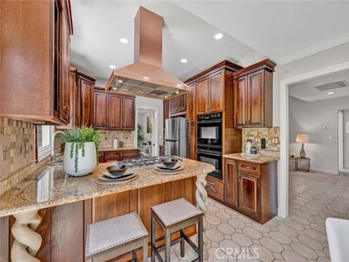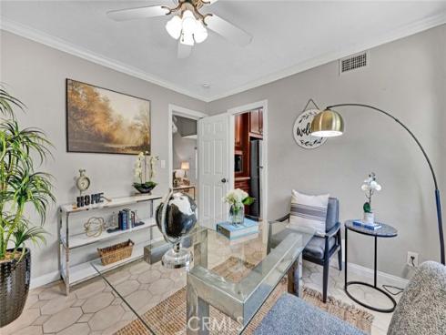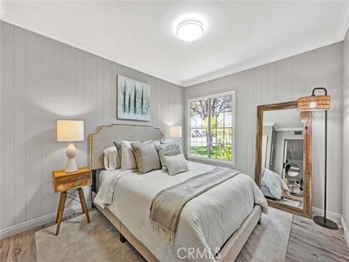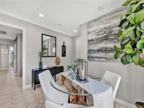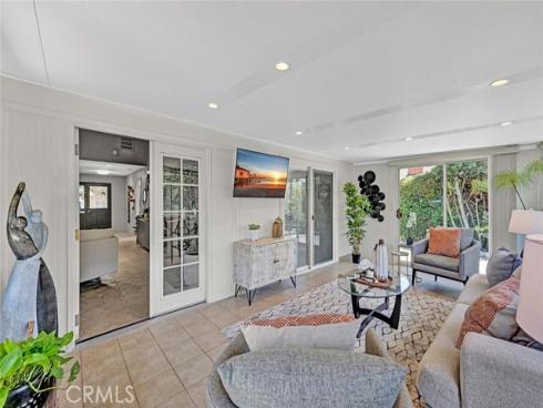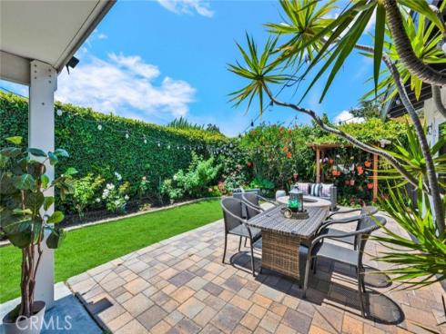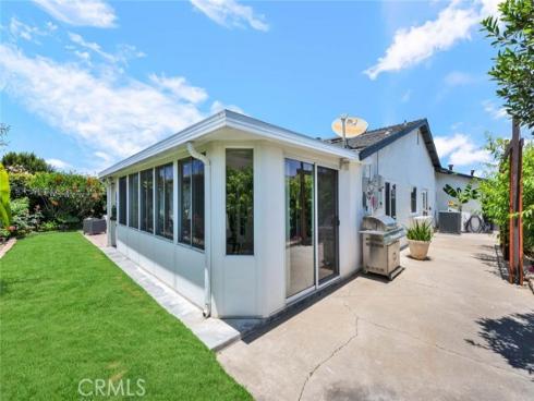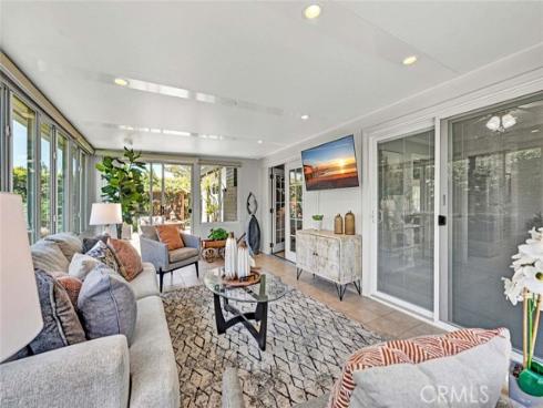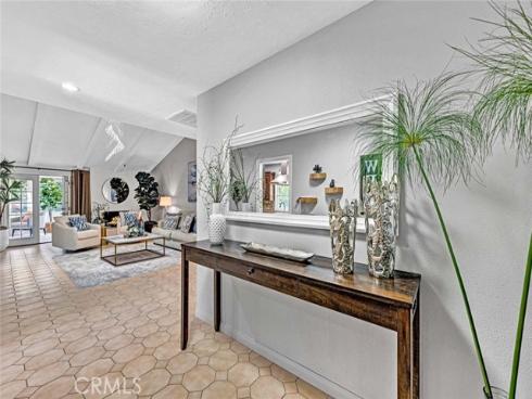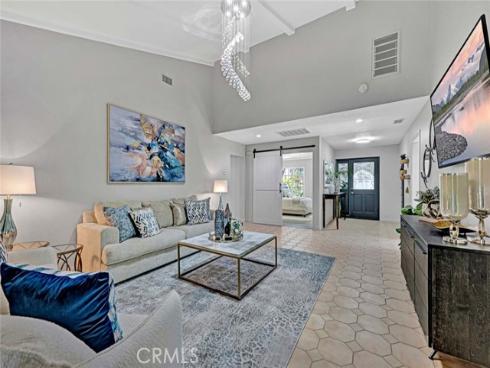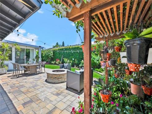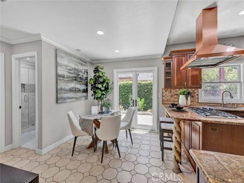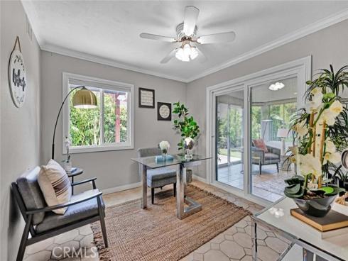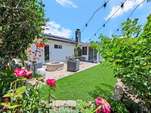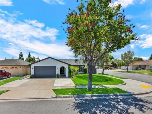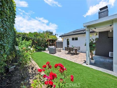 Absolutely stunning and model-perfect, this exceptional 1,804 square foot single-level Meadow Home is beautifully upgraded and nestled on an interior corner lot on a quiet cul-de-sac in one of Fountain Valley’s most desirable neighborhoods. Boasting 3 bedrooms, 3 remodeled bathrooms, and a versatile formal dining room (currently used as an office or could be a 4th bedroom), this home offers incredible living space and thoughtful design throughout. Step into a welcoming front courtyard with tropical landscaping, a manicured lawn, and a covered walkway leading to a custom entry door with beveled glass. Inside, you’ll find designer tile flooring, dual pane French-style windows, crown molding, raised panel interior doors, barn door, recessed lighting, and central A/C. The extra-large living room impresses with soaring open-beam ceilings, a cozy fireplace, and French doors opening to a light-filled sunroom with tranquil backyard views. The chef’s dream kitchen features granite countertops, travertine backsplash, custom rich wood cabinetry, a breakfast bar, 5-burner gas cooktop, vent/hood, double ovens, and a dishwasher, and flows seamlessly into a charming breakfast room with French doors to the side yard. All three bathrooms are tastefully remodeled with quartz vanities, designer tile surrounds, mosaic inlays, frameless glass enclosures, and modern fixtures. The spacious primary suite, convenient inside laundry room, and direct-access 2-car garage with built-in storage add even more comfort and functionality. Step outside to your own private wrap-around backyard oasis with interlocking paver patio, fire pit, lush lawn, flower-covered pergola, and blooming gardens—all surrounded by block wall fencing for enhanced privacy. Ideally located near shopping, dining, award-winning schools (Masuda Middle just named a California Distinguished School), and just minutes to Mile Square Park and the beach, this home truly has it all!