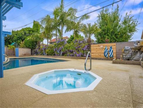 Enjoy the Fountain Valley lifestyle in this gorgeous fully refurbished property featuring 5 large bedrooms and a possible multi-generational living layout with a separate entry on the second floor. Magnificent large open kitchen with high-end appliance package, motion-censored vent hood, quartz waterfall countertops, floating shelves, new cabinets and upgraded lighting. Plenty of entertaining space in the gated courtyard and large sparkling saltwater pool and spa surrounded by mature landscaping. Living room features gas fireplace, hardwood flooring and built-in library bookshelves. Built-in sauna provides your own wellness retreat adjacent to spa, connecting to en-suite primary bedroom. All bathrooms are remodeled and feature beautiful finishes, electrical upgrades throughout and owned solar system. Pool has been recently recoated with new PebbleTec and tile. This charming home served as the hub for four generations of a large family. Owned by a special couple who were married for over 60 years, this ideally situated home hosted many happy memories of their children, grandchildren and great grandchildren. Surrounded by neighborhood parks, exercise paths, greenbelt and sidewalks. Located on the border of Huntington Beach and only 5 minutes to the coast, 0.2 miles to Tamura Elementary, 10 minutes from South Coast Plaza, 20 minutes from Newport Fashion Island and 10 minutes from John Wayne Airport.