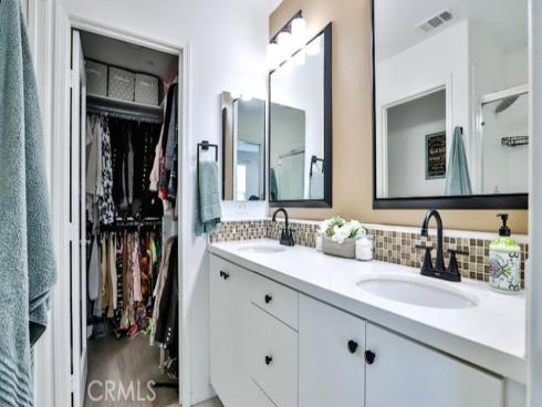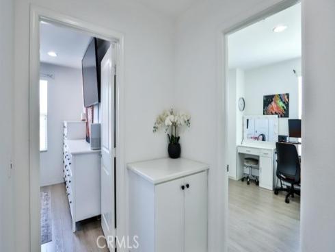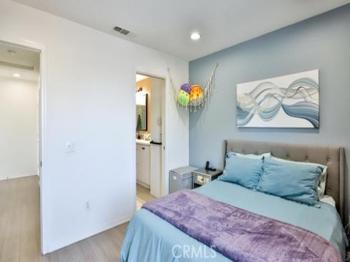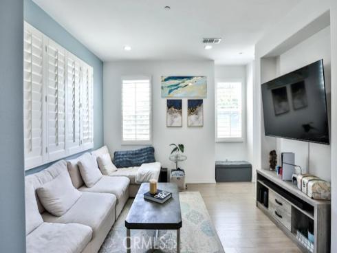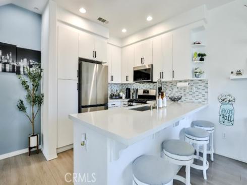 This beautiful and well-maintained carriage-style tri-level condo is located in the highly desirable gated community of Solana Walk. This end unit is very unique as the front entrance can be accessible from outside the community gate. This provides convenience and plenty of parking space for family and guests. Turnkey and tastefully updated throughout, this home features laminate wood flooring, dual-pane windows, recessed lighting, custom plantation shutters, upstairs laundry, a tankless water heater and a smart WiFi controlled Nest thermostat for central heating and air conditioning. Located in the heart of the home, the chef’s kitchen flows seamlessly into the living space and is highlighted by a large center island with bar seating, quartz countertops, recently upgraded stainless steel appliances and a sizable balcony where you can relax, enjoy the fresh air and view. The third floor is a private retreat featuring a guest suite with a private full bath and a master suite with a walk-in closet and spacious bathroom with cultured marble dual vanity and large shower with glass enclosure and tile. The Solana Walk community features resort-style amenities - swimming pool, private cabanas, covered outdoor barbecue/cooking area, dining area and a large outdoor fireplace. This must-see home is located within minutes to shops, restaurants, parks and entertainment with easy access to the beach, freeways and the award-winning schools of Fountain Valley.