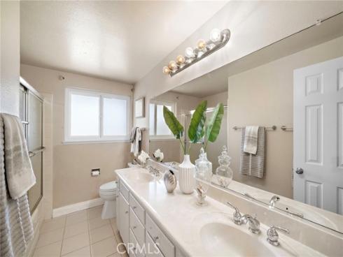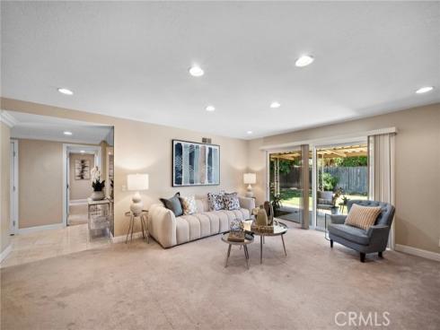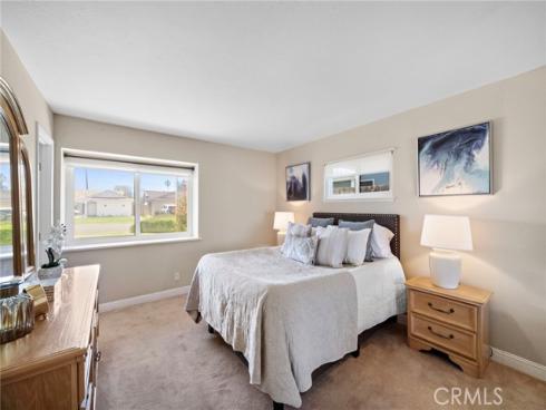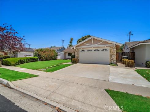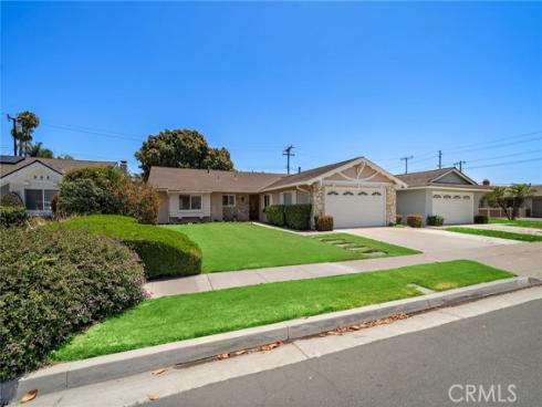 Welcome home to this lovely, impeccably maintained 4 bedroom, 2.5 bath single-level Meadow Home that offers 1,680 square feet of open-concept living space, filled with natural light and nestled in a highly desirable Fountain Valley neighborhood near award-winning schools, parks, shopping, and less than 4 miles to the beach—on the market for the first time in over 50 years. This beautifully upgraded home features central air conditioning, dual pane windows and sliders, custom blinds and window shades, recessed lighting, crown molding, raised panel interior doors, mirrored closet doors, an abundance of storage cabinets, and remodeled bathrooms and kitchen. Step through the custom front door with beveled glass into a welcoming foyer with Travertine-style tile flooring that flows into the banquet-size dining room that's open to the upgraded chef’s kitchen showcasing Corian countertops, gas cooktop with vent hood, double ovens, dishwasher, and extended custom Maple cabinetry with a long Corian buffet counter—ideal for entertaining. Off the kitchen is a convenient half bath, laundry room, and access to the two-car garage with lighted workbench and attic storage. The spacious living room boasts a stone fireplace with raised hearth and sliding doors that open to a serene backyard oasis with covered patio, lush lawn, colorful gardens, and mature fruit trees including a giant avocado shade tree producing abundant fruit - a true paradise for relaxing and entertaining while enjoying cool ocean breezes. The primary suite features a private bathroom with walk-in tile shower, while the three guest bedrooms—one with direct access to the yard—share a spacious hall bath with dual sinks and tub/shower combo with glass enclosure. This delightful home radiates warmth, comfort, and pride of ownership—ready to welcome its next loving family.