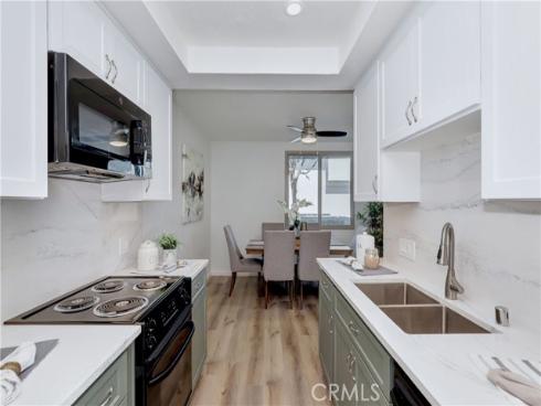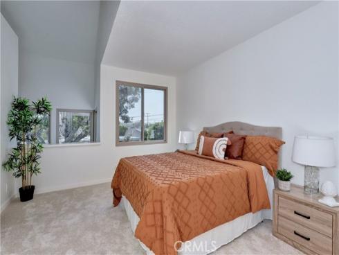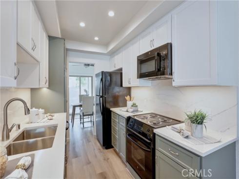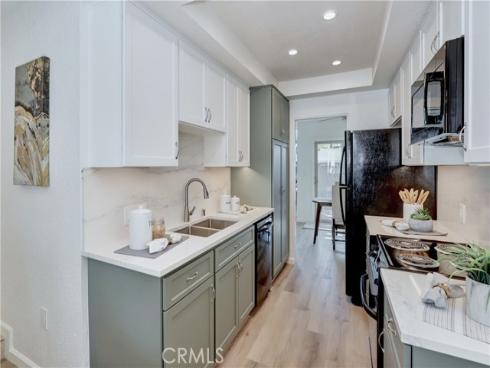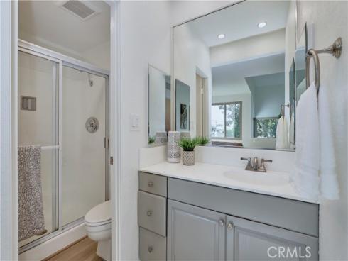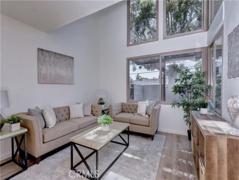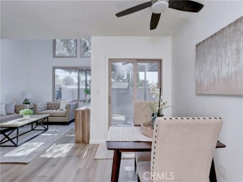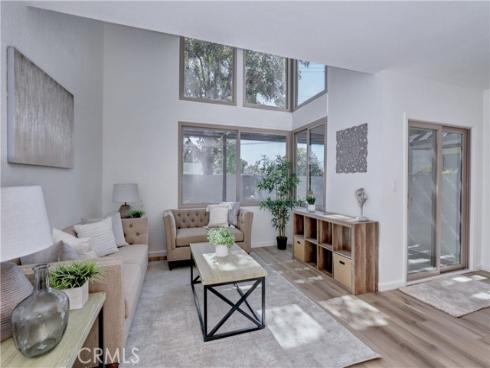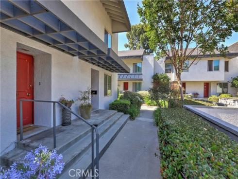 Welcome to this beautifully updated 2-bedroom, 2-bathroom corner-unit condo offering comfort, style, and convenience. This two-story home features soaring ceilings in the family room, creating a bright and airy atmosphere filled with natural light. Recent upgrades include new laminate flooring, plush new carpet, Corian kitchen counters, and modernized bathroom vanities. This community was created by renowned architect Frank Gehry. The spacious primary bedroom boasts a walk-in closet and a private en suite bathroom. Enjoy the convenience of inside laundry and an open, functional layout perfect for everyday living. Community amenities include a sparkling pool and relaxing spa, with assigned parking spot. Ideally located near shopping, dining, and major freeways—this home combines tasteful updates with an unbeatable location. Don’t miss this opportunity!