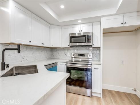 Welcome to this thoughtfully remodeled 2-bedroom, 2-bathroom condo in a highly desirable gated community in West Garden Grove. Spanning 1,069 square feet across two levels, this bright and functional home offers privacy and flexibility with a bedroom and full bathroom on each floor—ideal for multi-generational living, guests, or a home office setup. Step inside to discover a fresh interior featuring brand-new SPC flooring, modern recessed lighting, and contemporary paint throughout. The updated kitchen is equipped with white shaker cabinets, sleek quartz countertops, a new dishwasher, and stylish faucets—designed to blend elegance and efficiency. Both bathrooms have been upgraded with new vanities, lighting, tubs, and fixtures, offering a clean and modern aesthetic. Enjoy the comfort of a well-designed layout that balances open living areas with personal retreat spaces. The upstairs suite provides a peaceful escape, while the downstairs room offers convenient accessibility. Additional features include central heating and air, ample storage, and two assigned carports. Located near top-rated schools, freeways, and everyday conveniences, this pet-friendly community also boasts resort-style amenities including a sparkling pool and relaxing spa. Whether you're enjoying morning coffee on your private patio or taking a stroll through the landscaped grounds, this turnkey home offers the perfect blend of modern upgrades and serene living. Don't miss your opportunity to own this beautifully renovated home in one of West Garden Grove’s most sought-after communities!