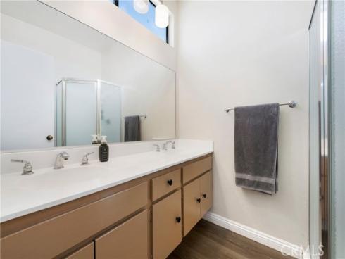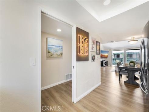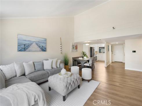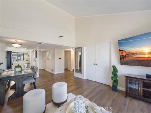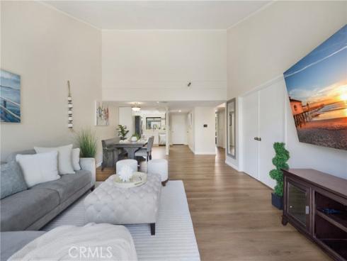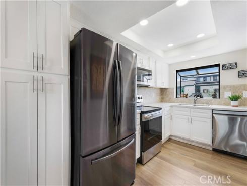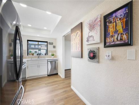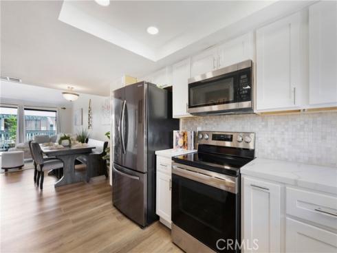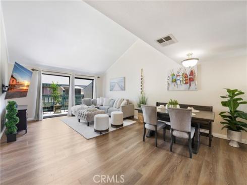 Welcome to a lifestyle where privacy, thoughtful design, and convenience align. Located in a gated community in the vibrant heart of Garden Grove, this beautifully renovated condo offers more than just a place to live—it’s an opportunity to enjoy modern comfort with a touch of sophistication. The main living area begins on the second level, where a wide entry introduces an open-concept layout designed for both everyday living and entertaining. The upgraded kitchen features classic shaker cabinets, quartz countertops with dramatic dark veins, and a shimmering backsplash that catches the light and the eye. The flow from kitchen to dining to living room creates a warm, connected atmosphere. A private balcony expands the living space outdoors, while soaring ceilings and large sliding glass doors flood the area with natural light. This level also offers two well-sized bedrooms, a full bathroom, and a conveniently located laundry area. On the upper level, the primary suite offers a quiet retreat, complete with double closets, generous windows, and an en-suite bathroom. Community amenities include a pool, spa, and poolside shower facilities—perfect for relaxed weekends or entertaining guests. The condo also includes two assigned carport spaces. This is your chance to own in one of Garden Grove’s most desirable gated communities—where thoughtful renovations and a well-designed layout create a truly inviting home.