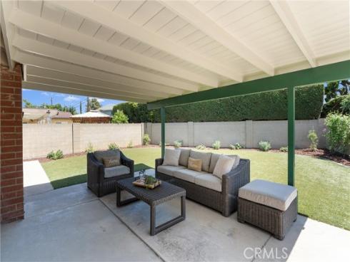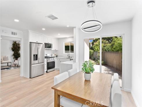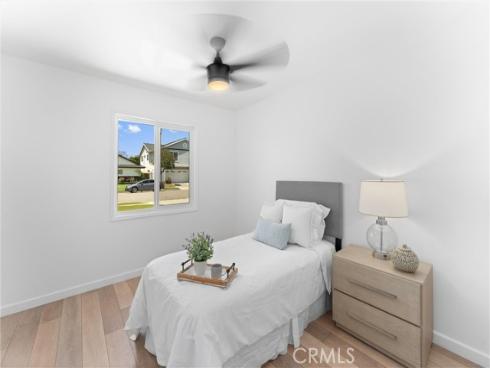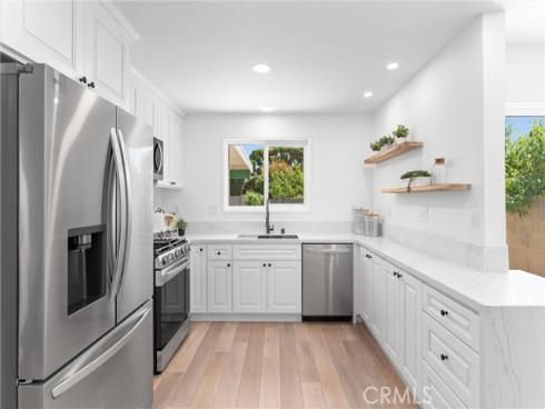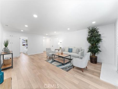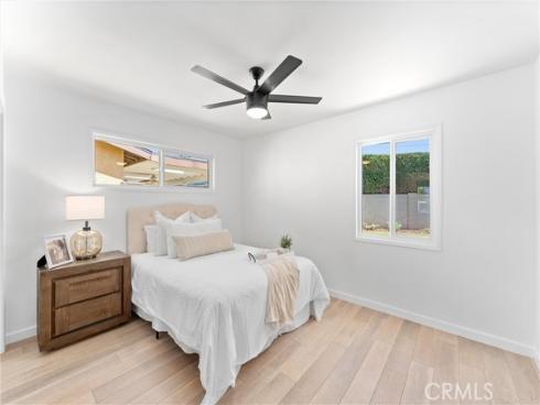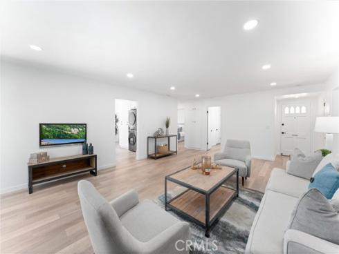 Nestled within the extremely desirable “Garden Park” neighborhood of West Garden Grove, this remodeled, move in ready, 4-bedroom, 2-bathroom home offers 1,682 square feet of well-designed living space situated on a generous 6,120 square foot lot. This single-story home offers comfort, style, and functionality perfect for modern living and entertainment. There are numerous upgrades and amenities throughout. The entire home has been upgraded with luxury waterproof plank flooring, recessed lighting throughout. The heart of the home, the kitchen, boasts beautiful quartz countertops and backsplash, complimented with stylish cabinetry. The kitchen comes fully equipped with stainless steel appliances, including an upgraded range, top of the line refrigerator, and stackable washer-dryer combo, upgraded fixtures. The spacious family room provides a cozy gathering spot with a charming brick fireplace. The dining area features a modern style chandelier and additional cabinetry for storage. The main hall bathroom has been updated with a large tub/shower combo, upgraded 2-sink vanity, and upgraded fixtures. The additional bathroom offers an upgraded shower, single sink, and upgraded fixtures. The home has been upgraded with a new water heater, A/C system, electrical and plumbing, vinyl dual glaze energy star windows and 2 slider glass doors that lead to the backyard and covered patio. The long driveway offers privacy and ample parking. The front and back yards offer low maintenance with an all-turf surface, water shut off, and drip irrigation in the backyard planters. Eastgate Park is just a bike ride away. Home is located near shopping and entertainment, and attends award winning GGUSD schools Enders Elementary, Bell Intermediate, and Pacifica High School. You have to see this home!