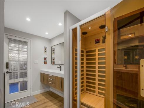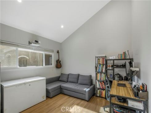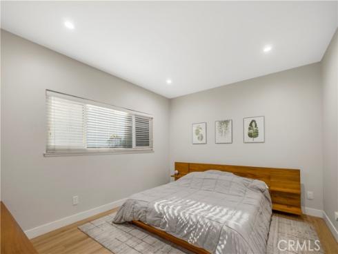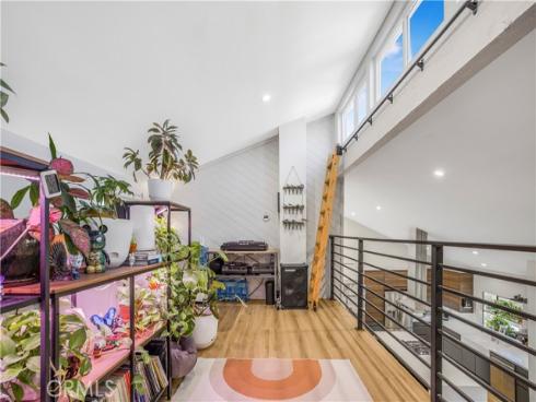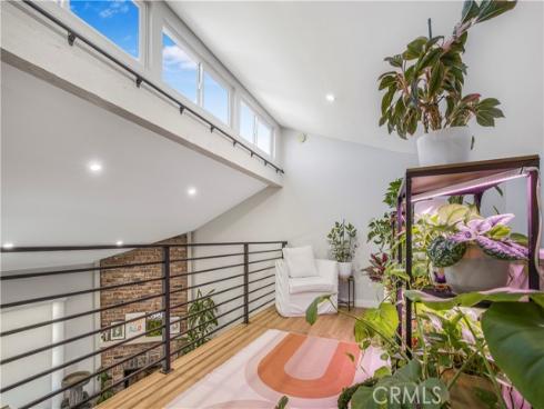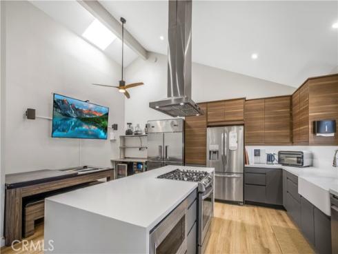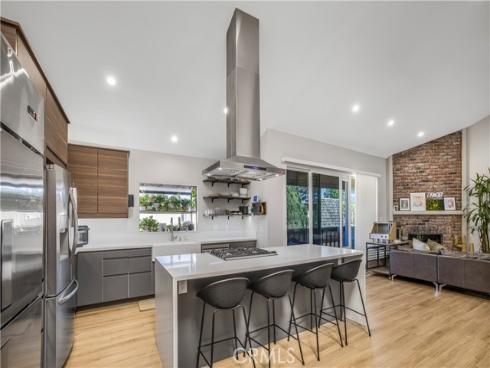 Step into modern comfort in this fully renovated 1600 sqft 2-bed, 2-bath tri-level townhome, nestled in a quiet gated community just minutes from Disneyland, Rodeo 39, and the Promenade at Garden Grove. This thoughtfully designed home features an open layout filled with natural light, ideal for plant lovers and entertainers alike. The heart of the home is the custom chef’s kitchen, boasting a stunning white quartz waterfall island, walnut and gray two-tone cabinetry, a freestanding slide-in gas range, and a sleek built-in microwave. All LG kitchen appliances (2021), along with a Frigidaire refrigerator, washer/dryer, new HVAC system, and water heater (2021), offer peace of mind and modern efficiency. The leased solar system with battery backup adds energy savings and resilience. Beautiful custom iron banisters elevate the staircase, paired with a modern front door that creates a stylish and welcoming entrance. Inside, enjoy upgraded luxury vinyl flooring throughout, floating vanities in both remodeled bathrooms, and dramatic vaulted ceilings with skylights and a 52” ceiling fan above a versatile dining space. The dining table even transforms into a pool or ping pong table—perfect for hosting! Upstairs, a unique third-story loft features a built-in sliding ladder for easy window access, making it a cozy hideaway or creative nook. Relax by the floor-to-ceiling brick fireplace or step outside onto one of two private patios—complete with a doggy door for your furry companions. With a spacious 2-car garage, updated systems, and prime walkability to shopping, dining, and entertainment, this home blends style, comfort, and location into one perfect package