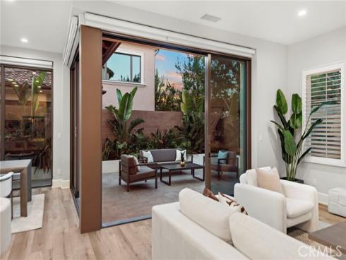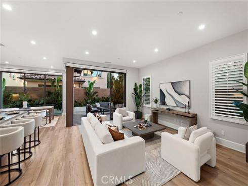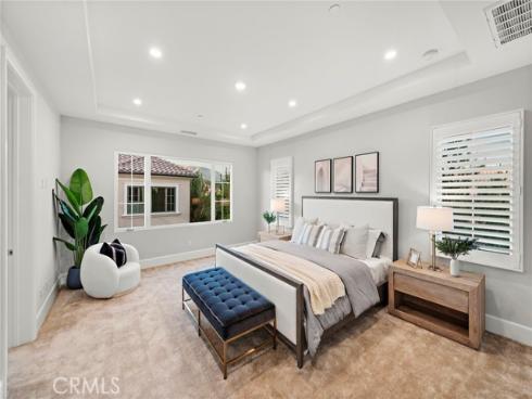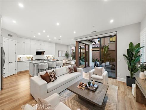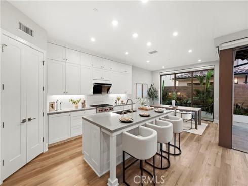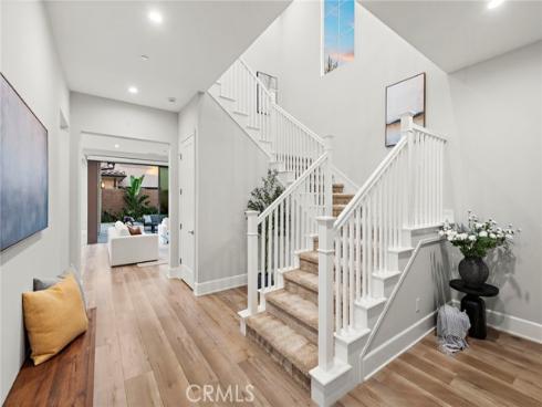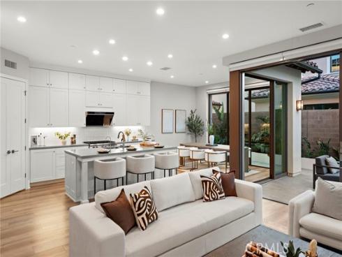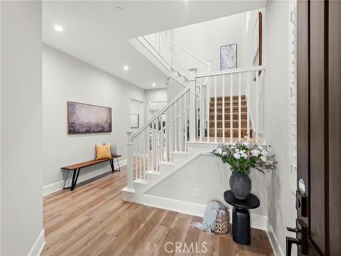 Situated in the prestigious guard-gated community of Orchard Hills Reserve, this beautifully maintained corner-lot home offers 4 bedrooms, 4 full bathrooms, and exceptional privacy with no neighbor on one side. The open-concept layout features soaring ceilings, a bright great room, and a gourmet kitchen with a large center island. Two sets of sliding glass doors connect the living space to a private backyard, creating ideal indoor-outdoor flow. The first floor includes a full bedroom suite, perfect for guests or multi-generational living. Upstairs you’ll find three additional bedrooms along with a highly functional loft space, perfect for a home office, playroom, or media area. Located just one home away from the resort-style pool, clubhouse, and playground, this home is both convenient and peaceful. Enjoy low HOA fees and low property tax, plus access to Northwood High School, one of the top-ranked schools in California. The community is surrounded by lush avocado groves and scenic walking trails, offering a tranquil and elevated lifestyle in Irvine.