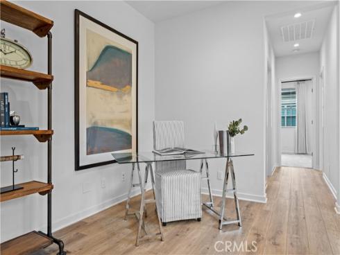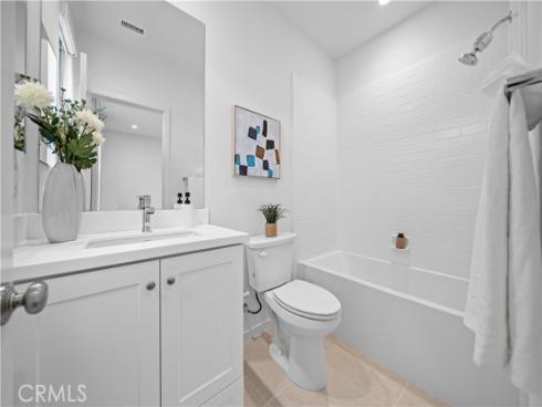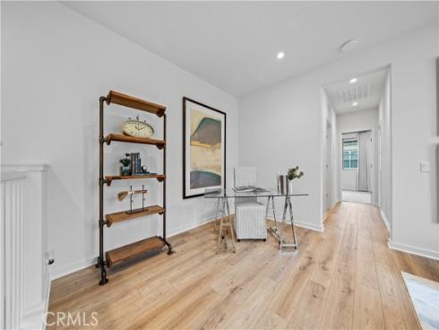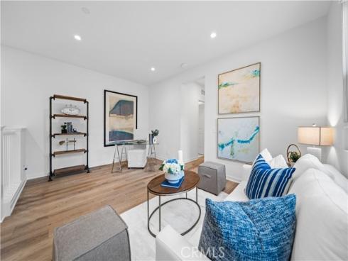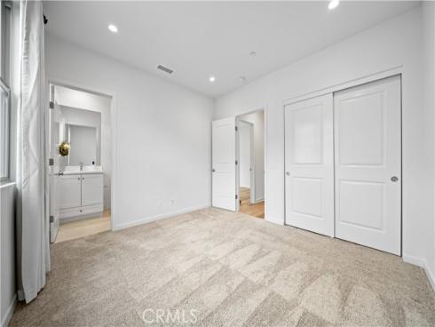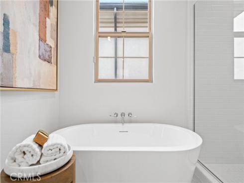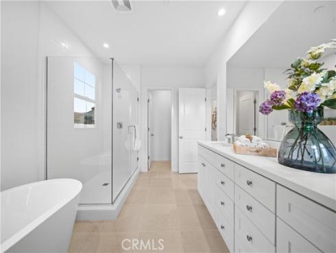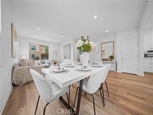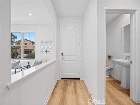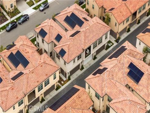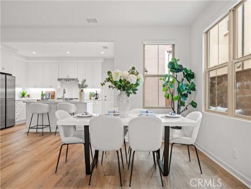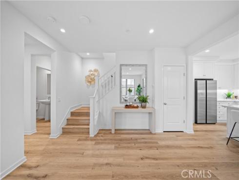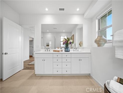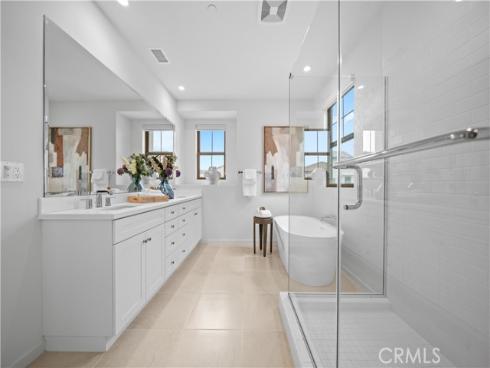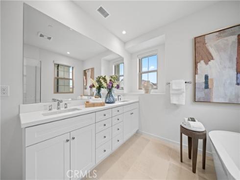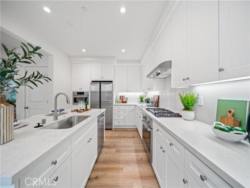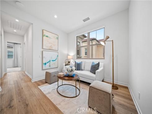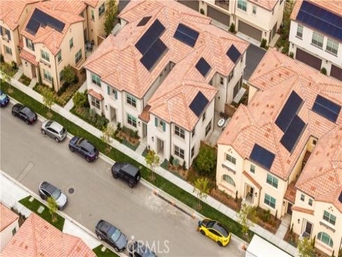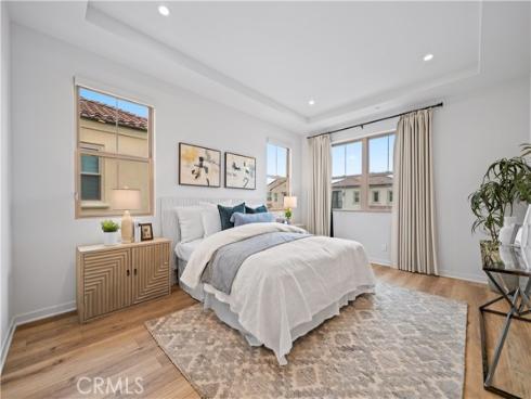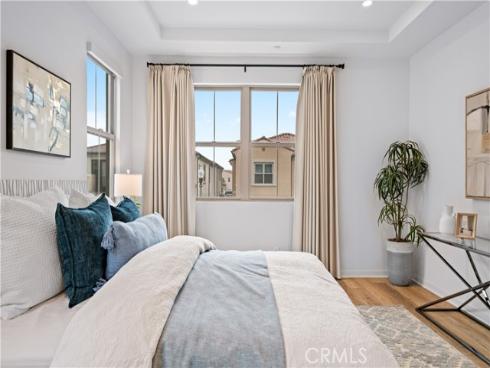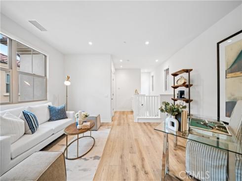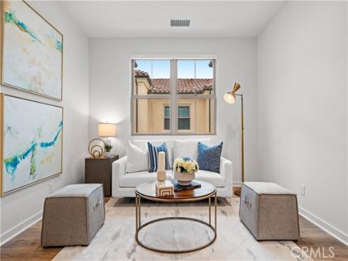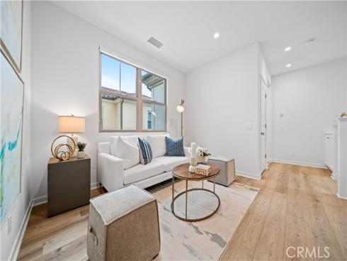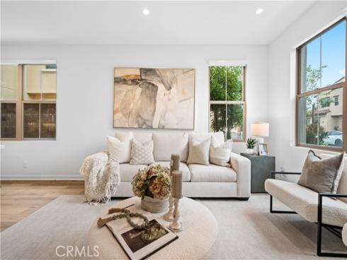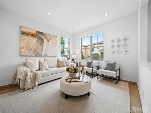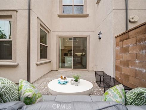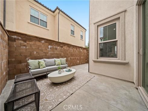Welcome to this exquisite 3-bedroom, 3.5-bathroom end-unit townhouse in the highly sought-after Portola Spring community. Upon entering, you're immediately greeted by an open floor plan that floods the space with natural light, creating a bright and inviting atmosphere. The luxury vinyl plank floors throughout the downstairs add warmth and elegance, seamlessly connecting the living area, dining area, and gourmet kitchen. The modern kitchen features high-end stainless steel appliances, sleek quartz countertops, and a spacious central island that serves as both a cooking and dining area. Sliding doors from the kitchen open to the private courtyard, enhancing the home’s brightness and airflow, while providing convenient access to the garage. Additionally, sensor lighting has been installed throughout the home, ensuring energy efficiency and added convenience. Upstairs, the thoughtfully crafted layout offers a versatile loft, a dedicated laundry room, and three beautifully appointed bedrooms, each featuring its own ensuite bathroom for ultimate privacy and comfort. The master suite serves as a serene retreat, complete with a spacious walk-in closet and a luxurious bathroom boasting dual sinks, a walk-in shower, and a freestanding bathtub. The laundry room is thoughtfully designed with cabinetry, adding both style and practicality. The loft provides additional flexible space, ideal for a cozy lounge or a home office. Custom curtains on all rooms and sliding doors add an extra touch of elegance, enhancing both privacy and aesthetic appeal. The paid-off solar system ensures significant savings on energy costs while promoting sustainability and environmental responsibility. As part of the vibrant Portola Spring community, residents enjoy access to a variety of resort-style amenities, including pools, barbecue areas, playgrounds, sports facilities, and scenic walking trails—perfect for enhancing your lifestyle with relaxation, recreation, and comfort.