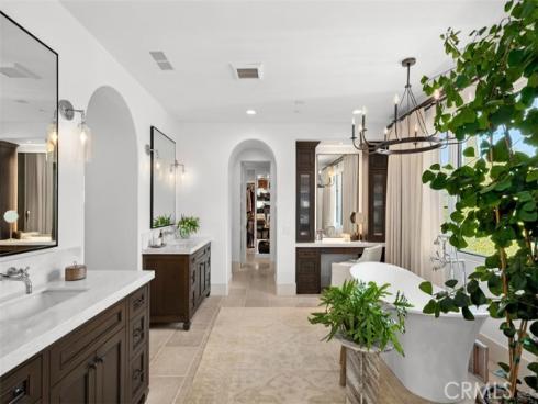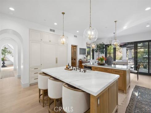 New Price! Exceptional Value for a Turnkey Home in Prestigious Shady Canyon. Reimagined, redesigned, and meticulously crafted, this Sycamore Plan 3 with six bedrooms and seven full bathrooms has been completely transformed into a bespoke sanctuary in a labor of love that elevates it far beyond the ordinary. Throughout the home, designer-appointed spaces showcase an extraordinary eye for detail—steel framed doors and windows, handcrafted tile work, warm oak flooring, and rich materiality weave a narrative of understated luxury. From the moment you enter through the arched wooden doorway, you are enveloped in a world of curated beauty, where reworked spaces enhance livability and flow, creating a sense of spaciousness while preserving intimacy in every room. At the heart of it all, the showpiece kitchen stuns with its custom millwork, marble countertops, and a statement-making La Cornue range—a dream for culinary enthusiasts and design lovers alike. An exceptionally well-organized pantry—complete with a built-in refrigerator, coffee station, and ample shelving—adds both convenience and luxury. Disappearing doors erase the boundary between indoors and out, allowing for seamless entertaining that spills onto the resort-like backyard. Here, a sun-drenched pool, covered loggia with fireplace, a fully equipped barbecue station and putting green invite long afternoons spent under the sky. Privately positioned, the primary suite is a true retreat. A cozy fireplace, soft, neutral textures and a romantic balcony create a serene atmosphere. The spa-inspired primary bath is nothing short of breathtaking—a freestanding soaking tub, framed by floor-to-ceiling drapes, handcrafted tiles, glass encased shower and dual vanities complete the experience. The expansive boutique-style closet features integrated lighting, custom shelving, and a built-in coffee bar and beverage fridge, elevating everyday luxury. Each of the home’s additional bedrooms and bathrooms are an experience of their own (two of which share the second of level with the master) - each with its own unique identity and a cohesive sense of warmth. A sophisticated office/lounge with rich dark cabinetry, a built-in bar, and dramatic lighting offers the perfect retreat for work or relaxation. Also, of notable mention are the two casitas, oversized laundry room and 4-car garage. Shady Canyon amenities include two guard gates, pickleball and tennis, pool and spa, barbecue area and recreation room.