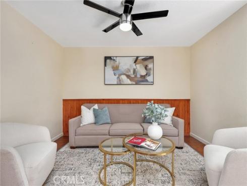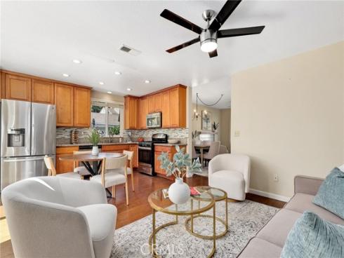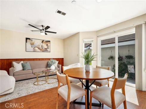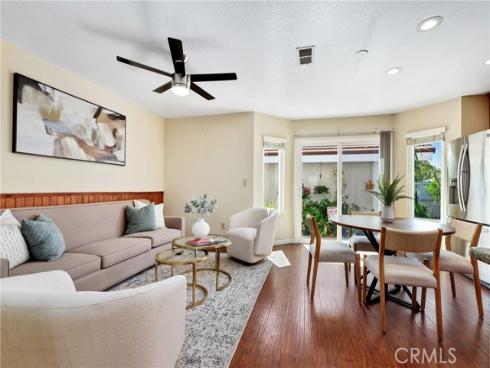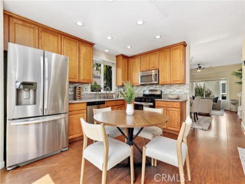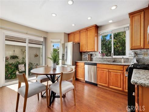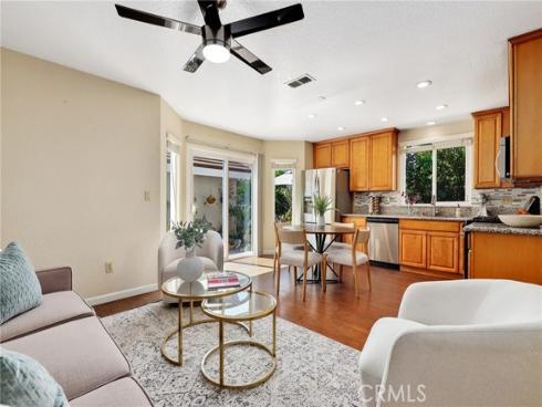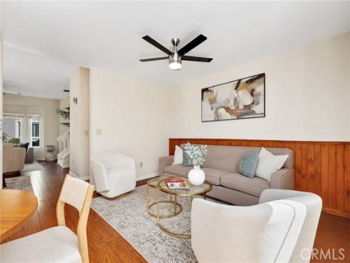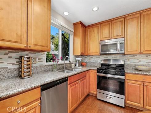 Welcome to this beautifully upgraded end-unit townhouse in the highly sought-after neighborhood of Woodbridge. Spanning 1,406 square feet, with 3 bedrooms and 2.5 baths, this light-filled, two-story residence is ideally located at a quiet cul-de-sac, boasting a rare, extra-large side yard adorned with lush green foliage and fruit trees. Step inside to discover a spacious living room accented by a cozy fireplace and abundant natural light. Downstairs features newly upgraded distressed wood laminate floors that complement the inviting kitchen and den area, complete with rich granite countertops, shaker-style cabinets, stainless steel appliances, and recessed lighting. Upstairs, you'll find upgraded bathrooms with newer floors and faucets, as well as new neutral carpet and custom interior paint throughout. Enjoy the convenience of newer windows and patio doors with dual-pane glass, enhancing energy efficiency and tranquility. This townhouse offers more than just a home; it provides a lifestyle within the resort-like amenities of Woodbridge. Residents enjoy access to two lakes with docks, two beach lagoons, over 15 swimming pools and spas including saltwater heated pools, along with over 20 tennis courts and several pickleball courts. The community also features numerous parks with playgrounds, volleyball courts, and scenic tree-lined streets perfect for leisurely walks. Located within the top-rated Unified Irvine School District, residents benefit from proximity to Springbrook Elementary, South Lake Middle School, and renowned Woodbridge High School, all within walking or biking distance. Easy access to major routes such as I-405 and I-5 makes commuting a breeze, while world-class shopping, dining, beaches, UCI, Irvine Spectrum Center, and the Irvine Business Complex are just moments away. With no Mello Roos tax and one of the most central and desirable locations in Irvine, this special home offers a rare opportunity that won't last long!