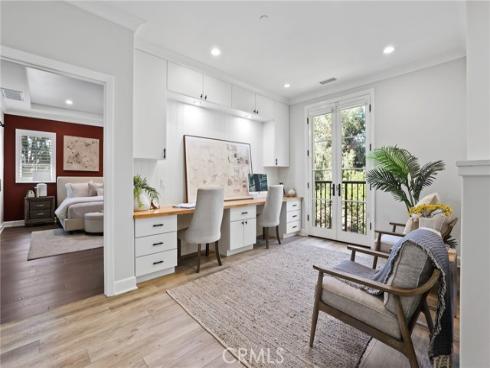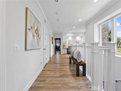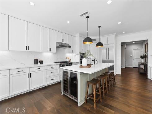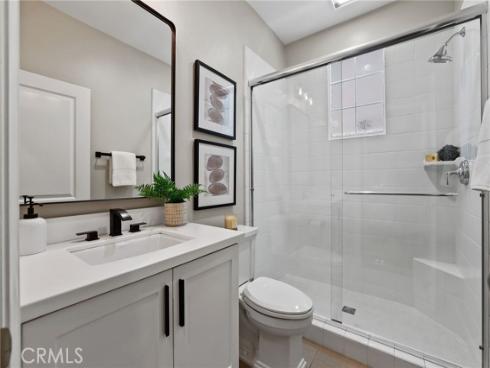 Discover this stunning four-bedroom, four-bathroom home with a spacious loft, ideally located on a rare corner lot with an extended driveway that adds both privacy and curb appeal. The expansive and well-designed floorplan includes a convenient first-floor bedroom or office with an adjacent full bath—perfect for guests or a dedicated workspace. Upstairs, you’ll find three generously sized bedrooms, each with its own private bathroom, offering comfort and flexibility for every member of the household. The bright and welcoming living room features a built-in cabinet and cozy fireplace, seamlessly connecting to the light-filled conservatory room framed by large windows. The upgraded gourmet kitchen is a chef’s dream, showcasing a large island with elegant Caesarstone quartz countertops, custom backsplash, upgraded pendant lighting, built-in stainless steel appliances, abundant cabinetry, and a walk-in pantry. Retreat to the luxurious master suite, complete with dual sinks, a soaking tub, and a separate walk-in shower. Additional highlights include energy-efficient solar panels and a whole-home water filtration system. Step outside to the spacious backyard with no neighbors behind—offering exceptional privacy and the perfect space for outdoor entertaining or quiet relaxation. Located in the highly desirable Orchard Hills community, residents enjoy access to resort-style amenities including two sparkling pools, a clubhouse, playgrounds, and sports courts. All of this, just a short stroll to Orchard Hills Village Center with convenient access to shopping, dining, and more. This rare gem is an exceptional opportunity you don’t want to miss!
