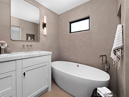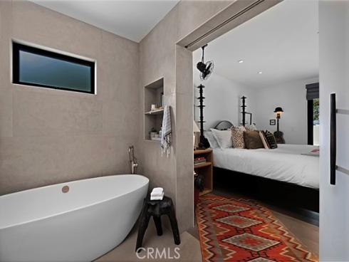Coastal masterpiece, single-level, professionally designed home overlooking the Pacific. Impeccable landscaping leads to the private front patio with built-in fireplace and sweeping coastline and sunsets views. Fleetwood front doors lead to a grand open floor plan with clean lines, Exquisite Surfaces oak wood flooring and great room with expansive ocean views. The gourmet chef's kitchen includes a Wolf range, Sub-Zero refrigerator, built-in wine cooler, custom cabinetry and a grand Carrara marble island with ample counter seating and additional storage. Fleetwood sliding doors and windows, as well as custom cabinetry and built-ins, throughout home. The kitchen servery window opens to outdoor counter seating with direct access to the private side courtyard for seamless indoor-outdoor living. The picturesque courtyard creates a beautiful entertaining space complete with built-in Heston BBQ and Mexican Mangrove root sculpture, and is set against a European inspired hillside with mature olive trees. In the private rear yard is a heated spool and in-ground gas fire pit surround, adjoined by beautifully terraced landscape and outdoor shower. Mature citrus trees adorn the meticulous property along with a raised chef’s garden. Gracious primary suite with sliding Fleetwood doors open to the spool. Hotel inspired primary bath with Victoria and Albert soaking tub, walk-in shower, Kalista and Kohler faucets, Moroccan limestone and Zelige glazed tile. Walk-in closet complete with custom built-ins. Secondary bedroom with reclaimed wood wall detail and sliding door leads to the rear yard. Separate laundry room with custom built-ins and ample storage. House filtration system with RO cold and instant hot kitchen faucet. Studio/Casita creative use space with sliding doors that open to the courtyard. Dimmable LED lighting by Lightolier and sound system throughout. This impressively designed home, grounds and breathtaking ocean views provide for an unmatched lifestyle that must be seen to be truly appreciated.