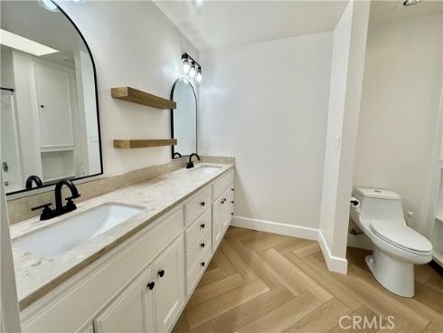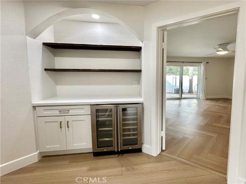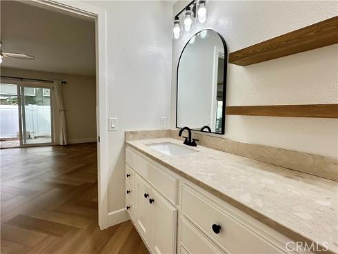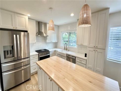 Incredible Laguna Hills location! Beautifully remodeled, ready to move in! Designed to perfection, this immaculate end unit home features 2 large primary bedrooms, 2 full bathrooms w/skylights. Open concept living, dining, kitchen. Infused with natural light, modern touches, and neutral oak laminate flooring throughout. The well-appointed kitchen features upgraded stainless steel appliances, butcher block and quartz countertops, with tumbled subway tile backsplash. Entertain guests around the expansive kitchen island complete with overhead ratan pendant lighting, and custom built in bar with wine fridge. Direct access 2 car garage with tons of storage space and private work shop. Enjoy indoor laundry, and your choice of the private backyard or large outdoor private patio. Community amenities include two pools, spa, gym, tennis, volleyball, and basketball courts. Close to the 405, 5, and 133. Just 2 miles to Irvine Spectrum, and less than 10 mins to the sand in Laguna Beach. This one is a MUST see!